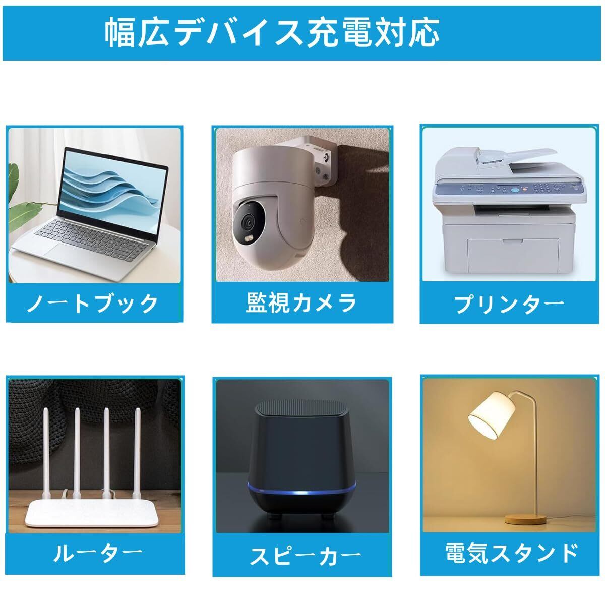 【操作簡単】ボタンを押して、出力電圧を5V/9V/12V/15V/20Vの間で切り替えます。電源供給ケーブルは長さ1mです。十つの変換コネクタがあるので、ほとんどのデバイスを充電できます。