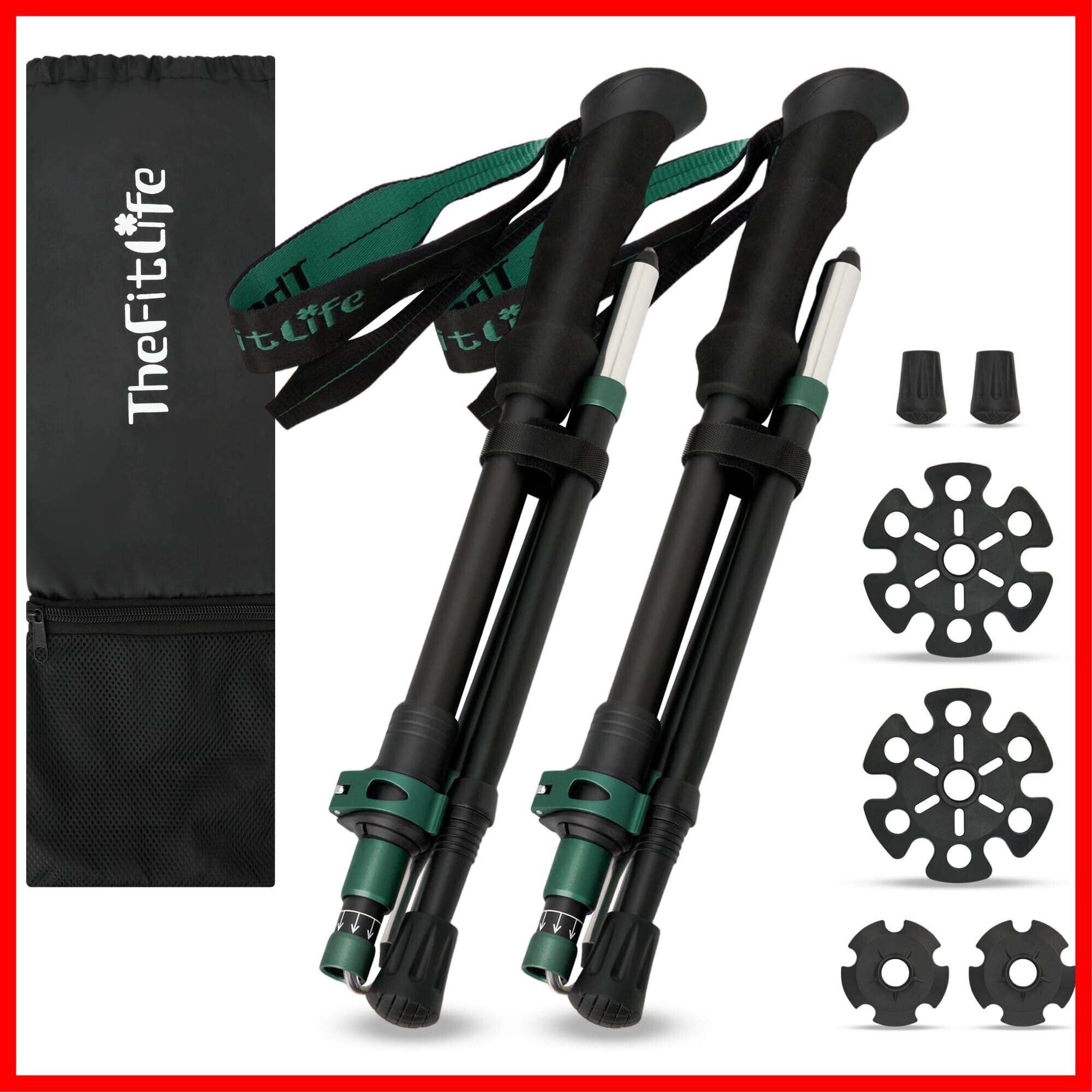 TheFitLife トレッキングポール 折畳み 登山 ストック 軽量 100-120cm伸縮 ウォーキングポール ウォーキングステッキ 2本セット 登山杖 登山ポール 山登り ステッキ ハイキングポール 男性 女性 高齢者