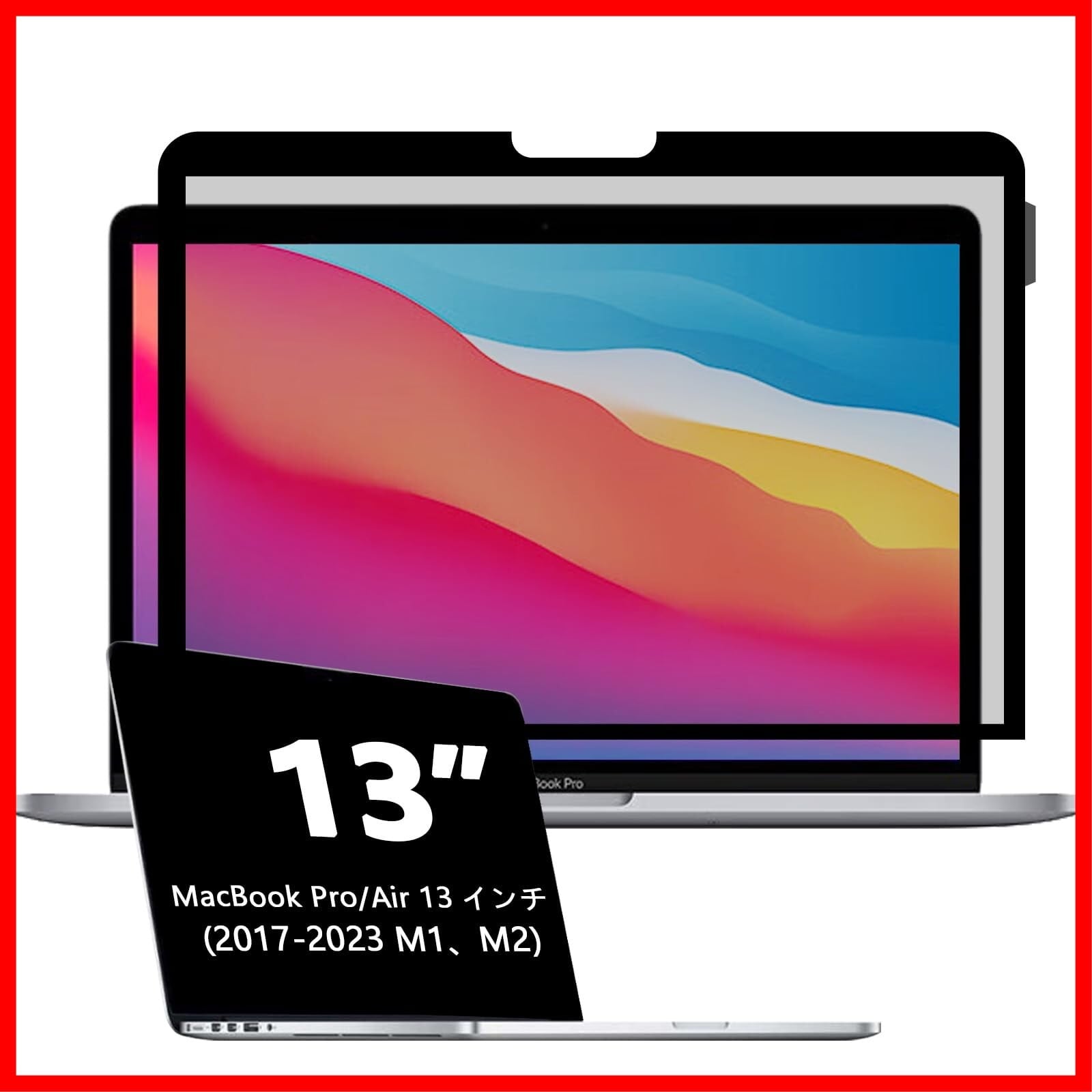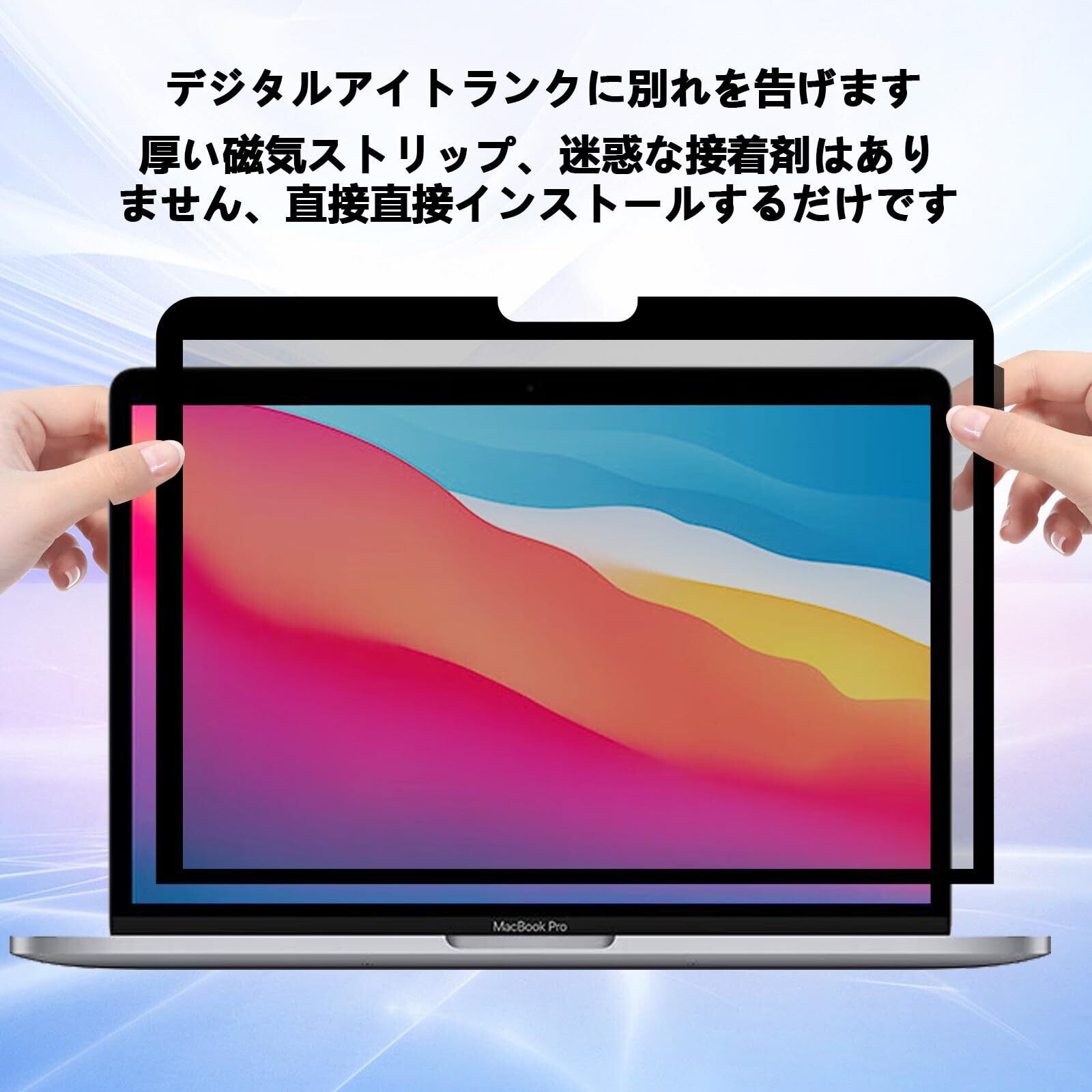 Macbook Pro 13インチ/Air 13.3インチプライバシーフィルム適用機種:299.8mm X 195.5mm L MacBook Air 13 2017-2022 リリース A1466 A1369 と互換性があります。 Macbook Pro 13 インチ 2023-2016 リリース A2338 M1 A2251 A2289 A2159 A1989 A1706 A1708 と互換性があります。 MacBook Pro 13 2012-2008 A1278と互換性があります。 Macbook Pro Retina 13 2015-2012 A1425 A1502と互換性があります。