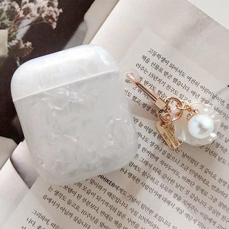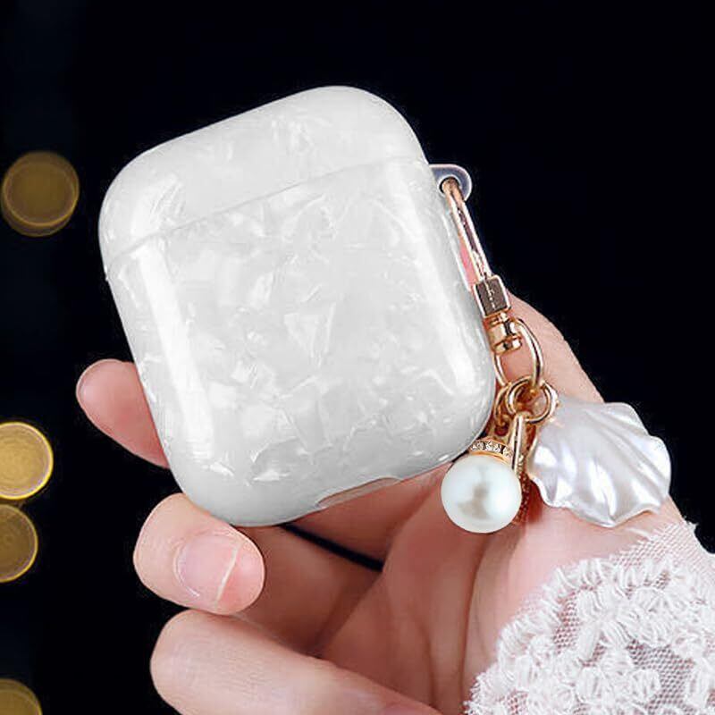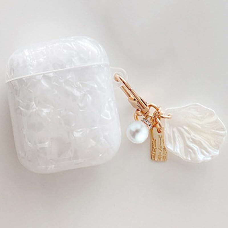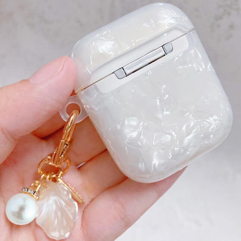 FINON airPods ケース 第1世代 / 第2世代 適用 ケース 可愛い airpods 1 ケース airpods 2 ケース カラビナ ストラップ キラキラ おしゃれ (ホワイト) | hananoki