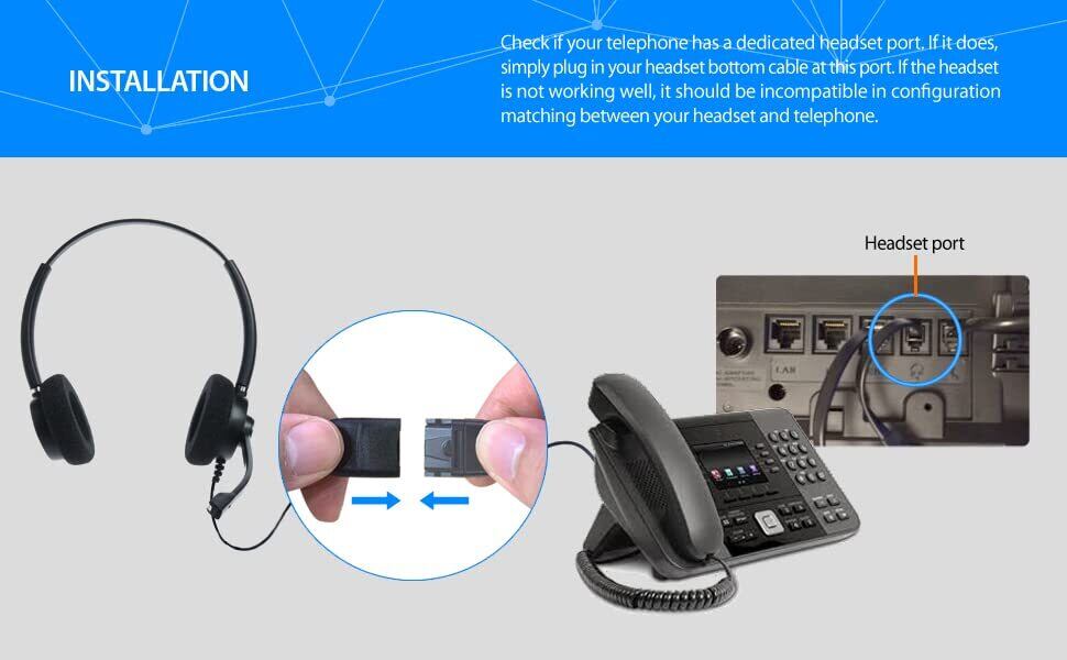 IPD IPH-165 バイノーラル キャンセレーション、コード付きコール センター/オフィス ヘッドセット、U10P-S ボトム ケーブル付き、Panasonic、SAXA、Fujitsu、Yealink、Cisco、LG の IP 電話と互換性あり | hananoki