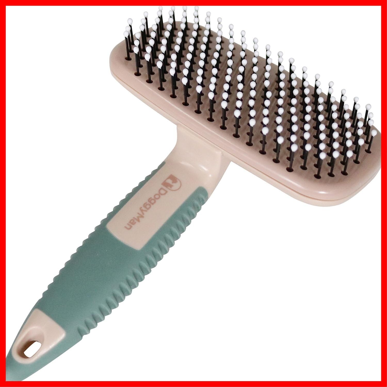 ●密集した樹脂製のピンがやさしく抜け毛を取る。樹脂製ピンは地肌にやさしい先丸加工のナイロンピン。
