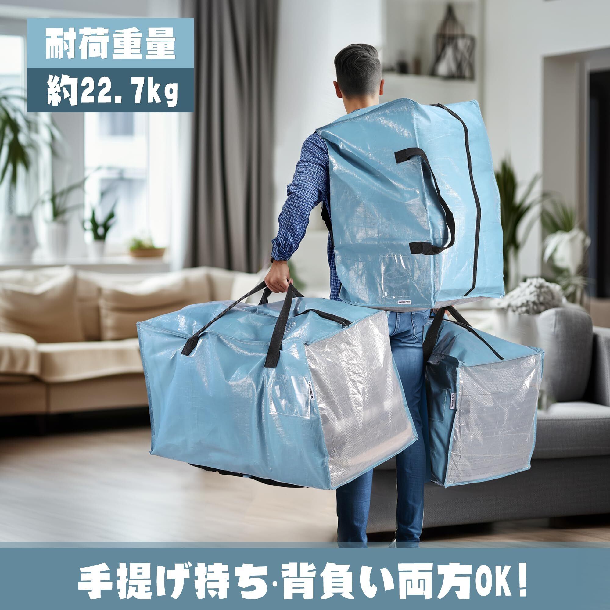 WORKPRO 布団収納バッグ 引越しバッグ 大型収納袋 大型収納カバン 100L大容量 73*36*40CM 耐荷重22.7KG 背負える仕様 持ち手付き 布団収納袋 衣類収納袋 透明窓 防塵 防水 引っ越し キャンプ 旅行 収納用 4枚セット