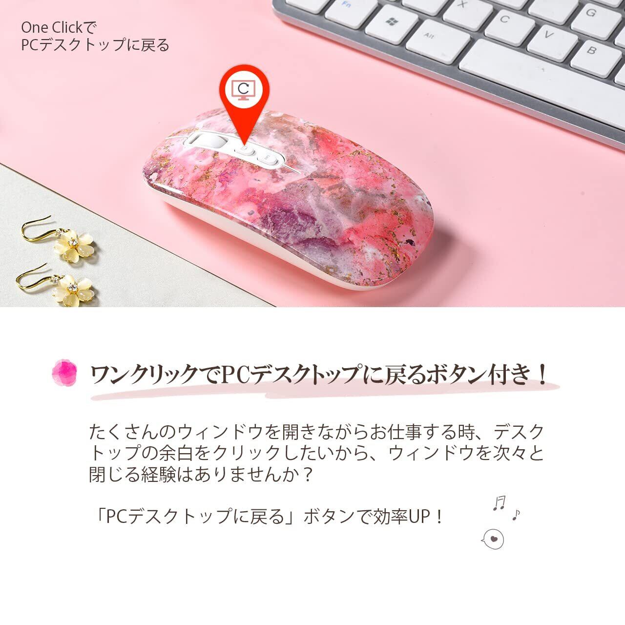 Bluetooth&2.4G、充電式静音ワイヤレスマウス、3台PC対応、3段DPI、かわいい、おしゃれ、ピンク、 EGRET PrettiE (絢爛) EM23-P1