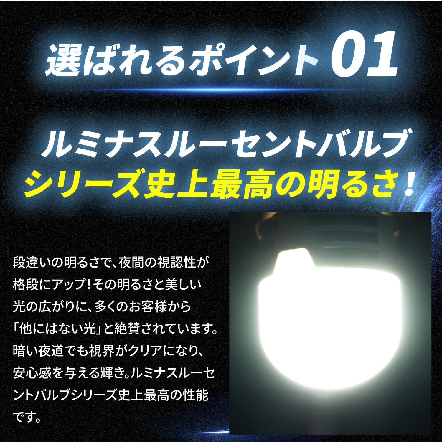 【ルミナスルーセントバルブ シリーズ史上最高の明るさ】 段違いの明るさで、夜間の視認性が格段にアップ! その明るさと美しい光の広がりに、多くのお客様から「他にはない光」と絶賛されています。 暗い夜道でも視界がクリアになり、安心感を与える輝き。 ルミナスルーセントバルブシリーズ史上最高の性能です。