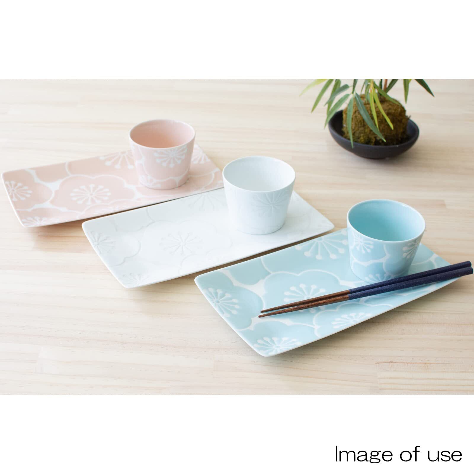 波佐見焼 「 はふり 」 長皿 長角皿 焼き物皿 径約25×13.5cm ブルー 梅 18087