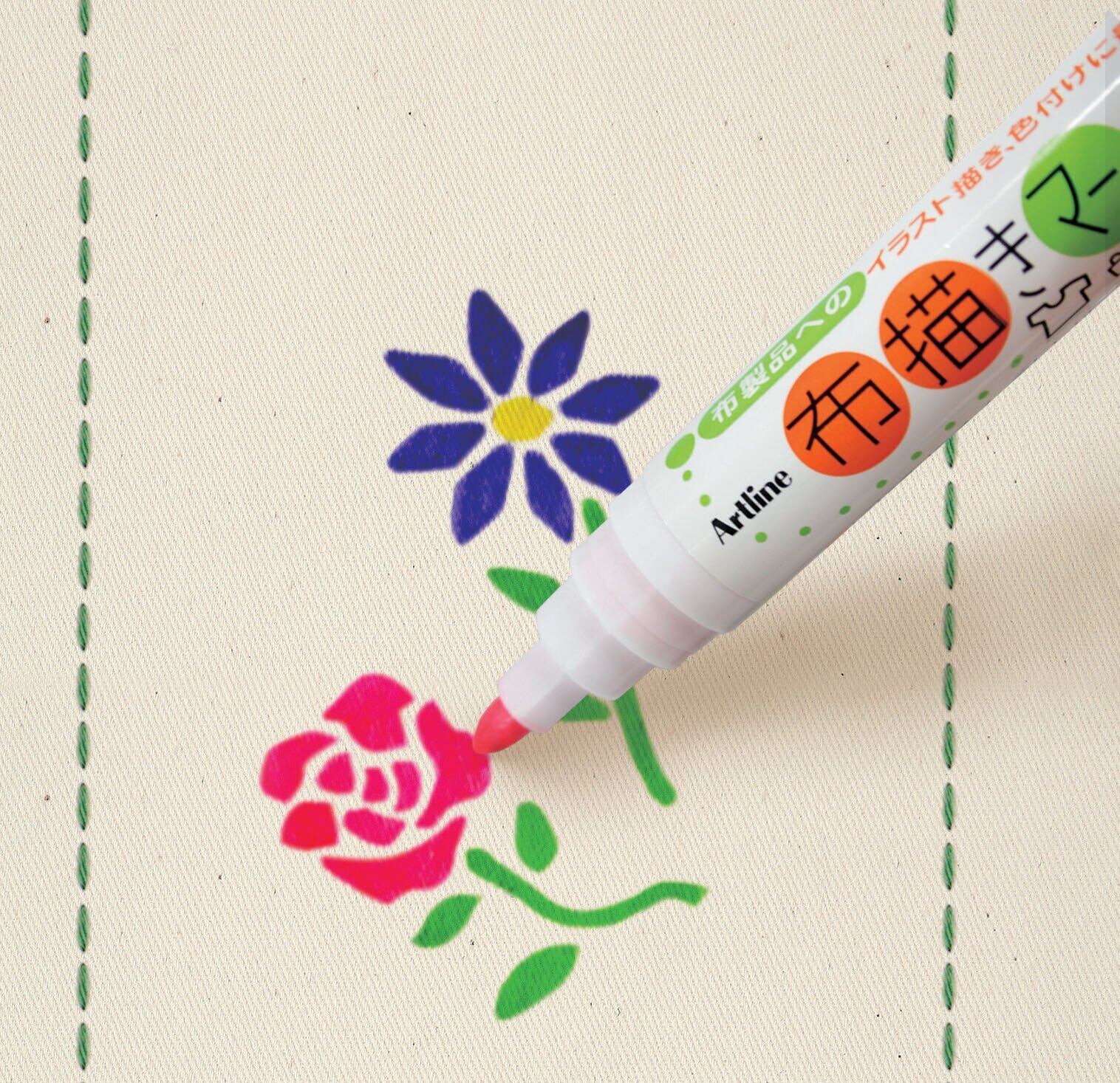にじみにくくて描きやすい、優れた耐水性・耐光性の水性顔料マーカーです。布バッグや巾着へのイラスト描きや色付けなど様々な場面で大活躍。