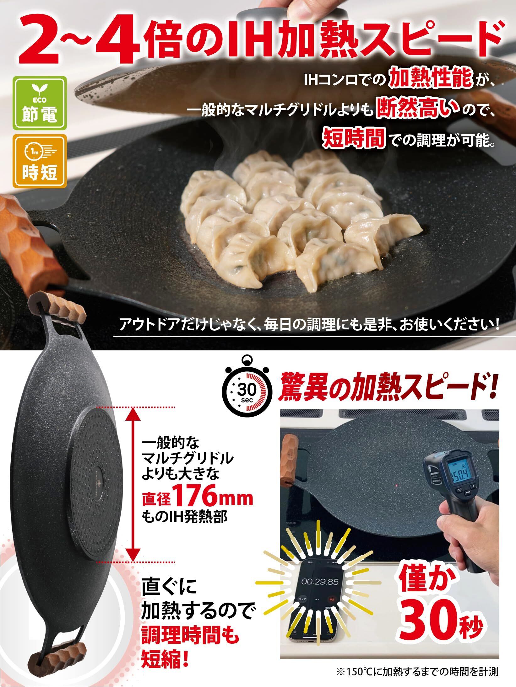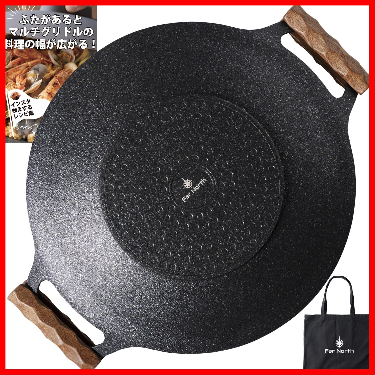 Far North マルチグリドル 33.6cm 【キッチンでも使いやすい仕様】 (本体、高級木製グリップ、収納バッグ、レシピ冊子)IH対応 GRIDDLE KING グリドルキング 特殊コーティング 軽量アルミ合金製 750g | hananoki