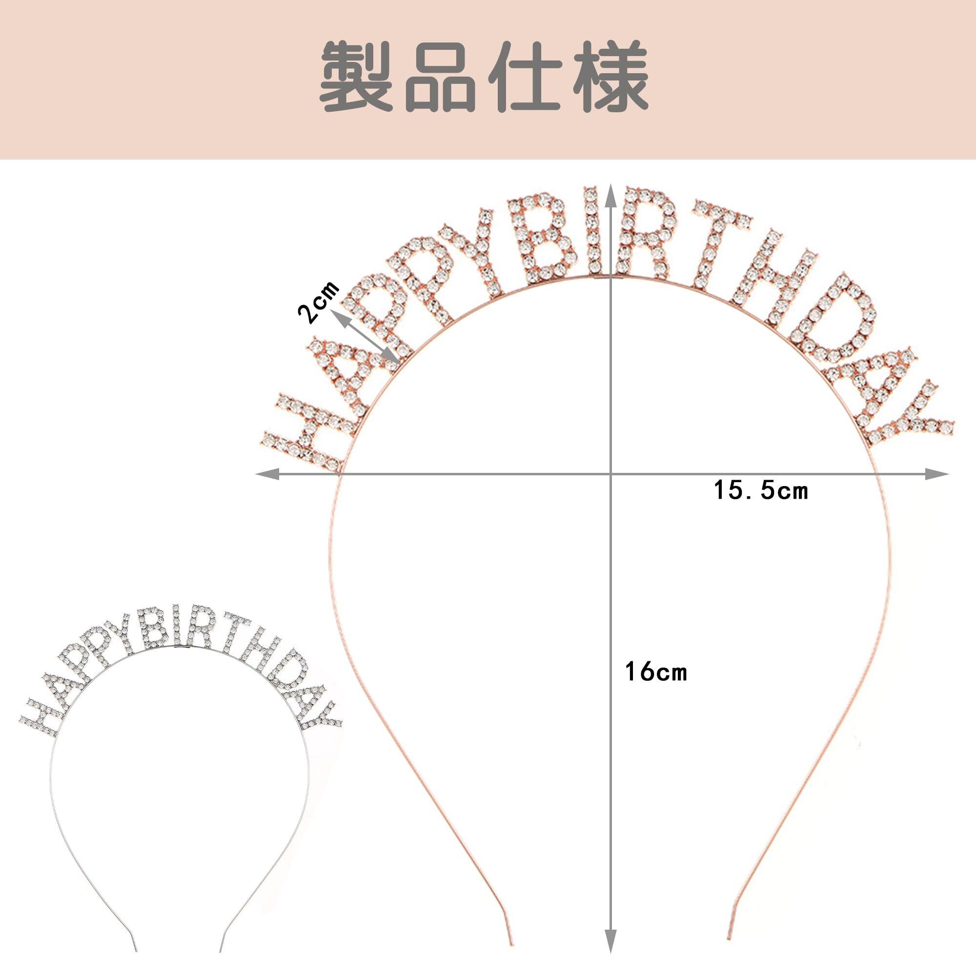 【製品仕様】誕生日のヘッドドレスのサイズ:長さ15.5cm*幅16cm、重量:約25g/個。2個入り(ローズゴールド+シルバー)。子供や大人が快適に着用できます。HAPPY BIRTHDAYヘアバンドは軽く、頭部に全く圧迫感を与えません。設計は快適で着用しやすいです。