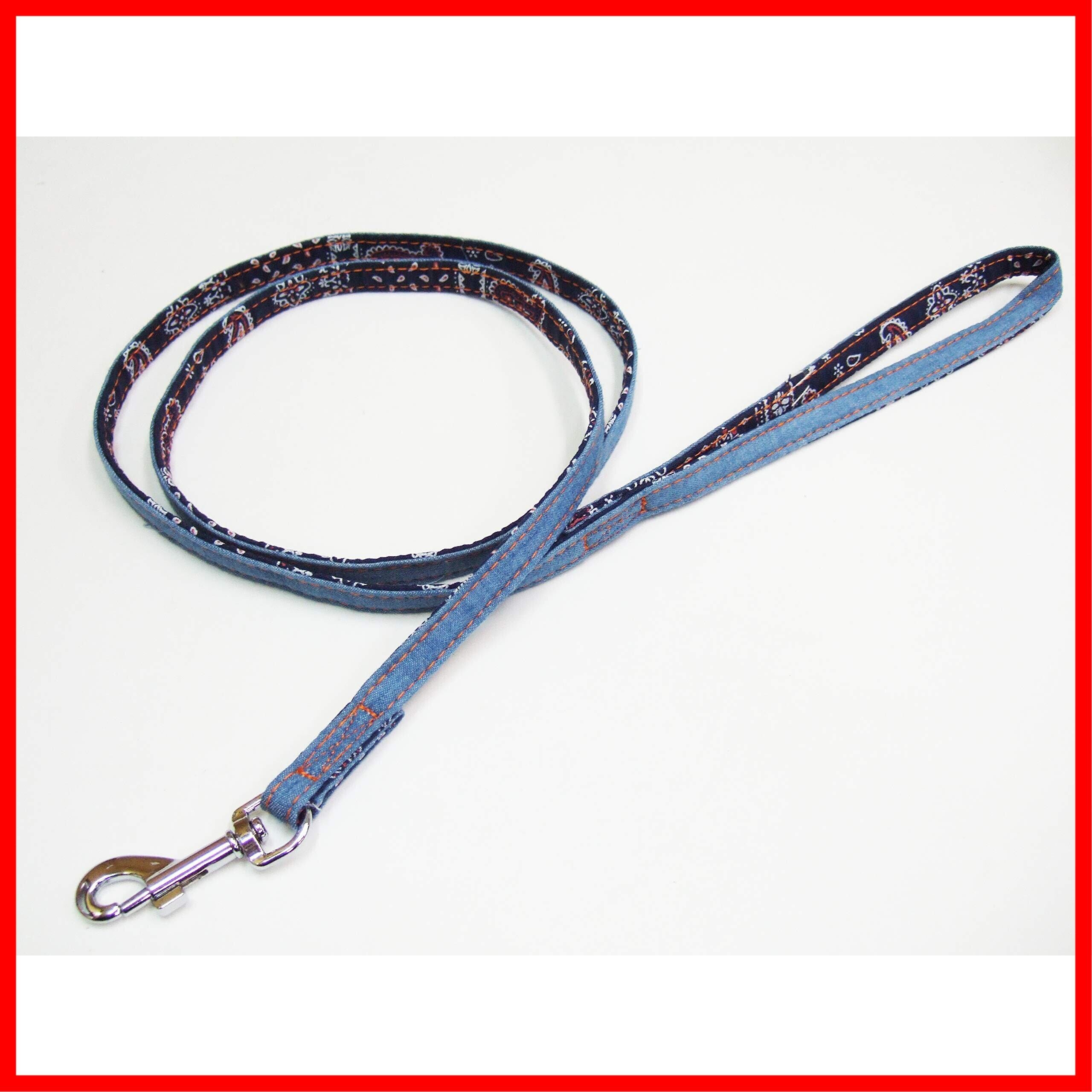 表面はデニム生地で、裏面にはペイズリー柄のコットン製生地を使用。シックなデニム生地とお洒落なペイズリー柄が可愛いリード。