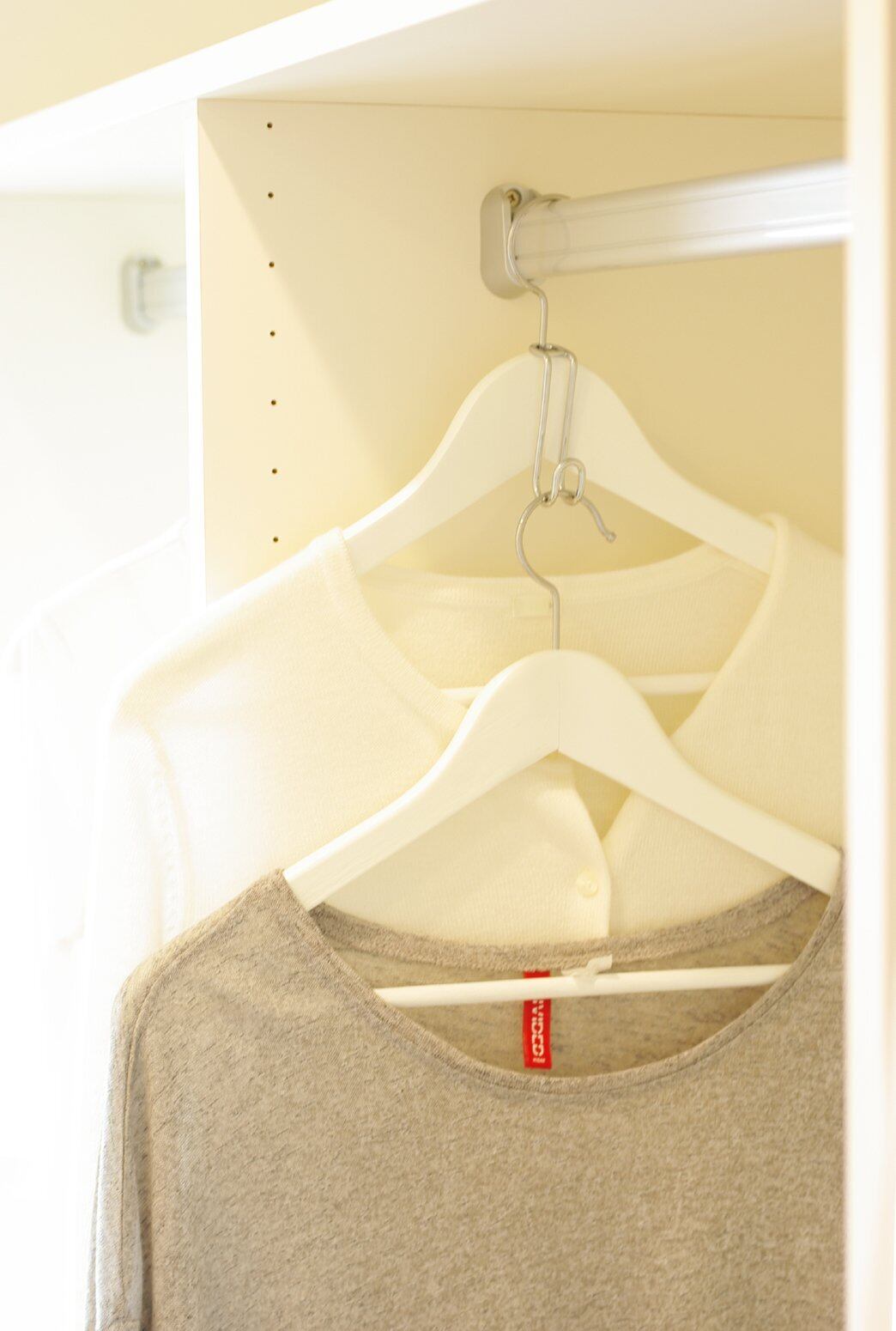 ハンガーに取り付ければ、かさ張る衣類もずらして収納。