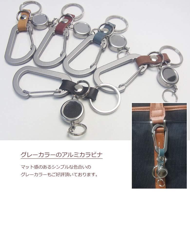 [highstyle] 日本製 栃木レザー&軽量アルミカラビナ&リールキー キーホルダー