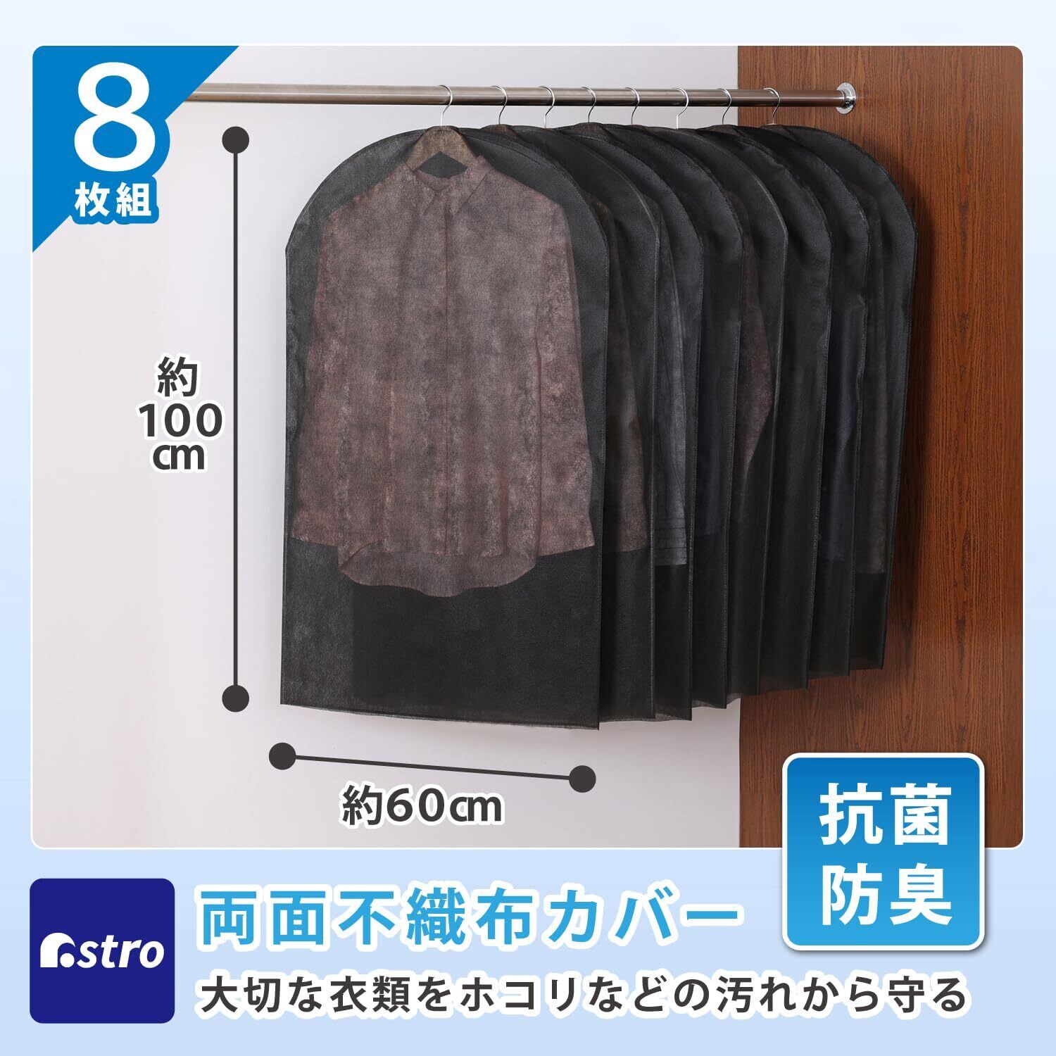 アストロ 衣類カバー ブラック ショートサイズ 8枚組 抗菌防臭 洋服カバー 衣装カバー 通気性の良い不織布製 においを抑える 下部開き仕様 ホコリ除け スーツカバー 収納カバー 保管 防塵 カット可能 クローゼット 吊り下げ収納 605-17 | hananoki