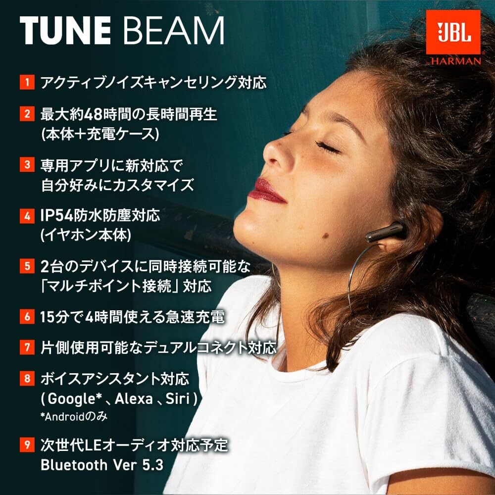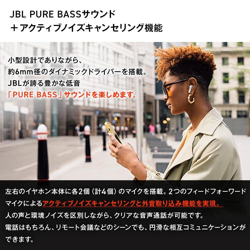 JBL TUNE BEAM 完全ワイヤレスイヤホン/アクティブノイズキャンセリング/スケルトン 透明 外音取込 IP54 かわいい (ゴーストホワイト)