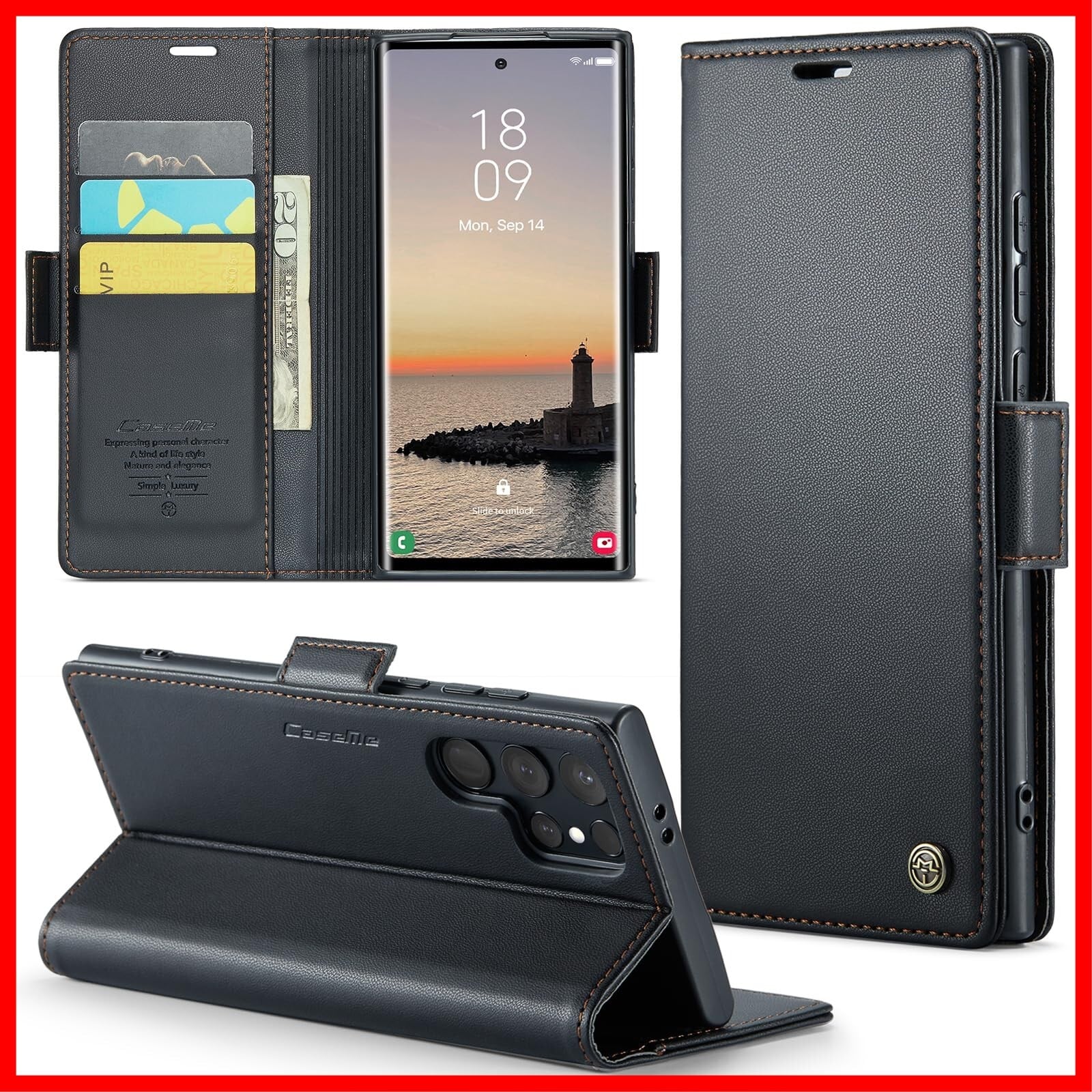 このGalaxy S24ultra専用の気質手帳型ケース!上質なTPUレザーを採用し、360°衝突防止、携帯電話を全面的に保護しています。財布型デザインのスマホケースの内側には3つのカードポケットが付いています。少量の現金とカード類2枚、携帯電話を持って、いつでも外出できます。滑り止め手帳型ケースは、画面の支持方向を自由に調節するように設計されている。ビデオやテレビ、オフィス会議、料理の勉強、楽器の勉強など、生活に便利さを加えることができます。携帯ケースサイドマグネット式吸着閉鎖は、より隠蔽的で安全である。ストラップ穴のデザインは、携帯電話を持ち歩く方法をより多く提供します。