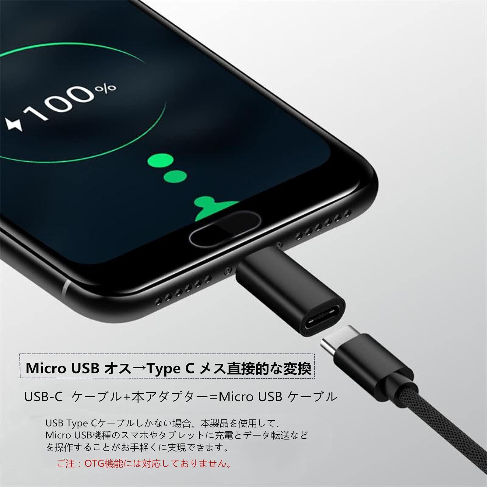 【USB C(メス) to Micro USB(オス)】接続するだけであらゆる設定が不要となりスマーホとタブレットなどUSB type cをmicro USBに迅速に変換できるアダプターです。ご注:OTG機能には対応しておりません。