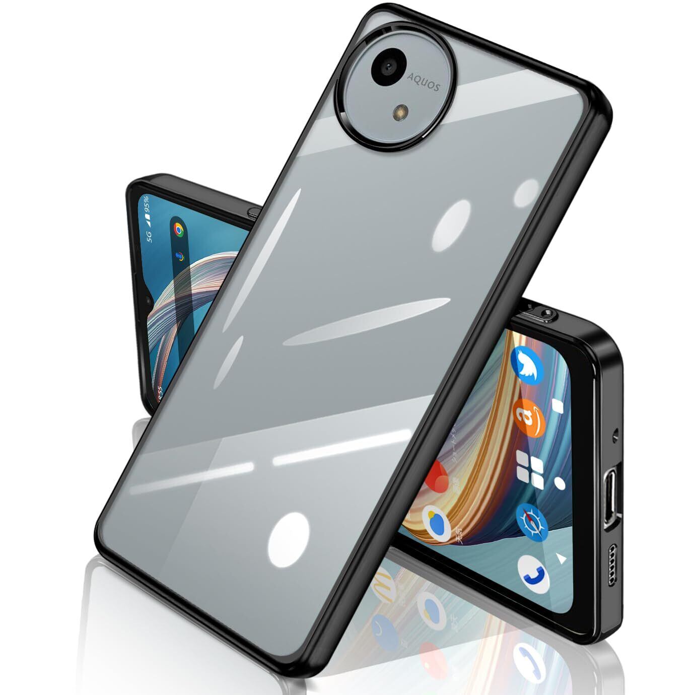 For AQUOS wish4 SH-52E ケース クリア アクオス ウィッシュ 4 ソフト ケース クリスタル 透明 TPU 素材 保護 カバー AQUOS Wish 4 対応 ストラップホール付 (ブラック)