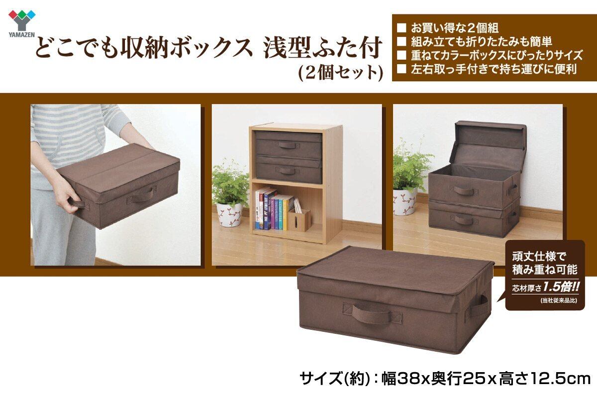 山善(YAMAZEN) どこでも収納ボックス 浅型 ふた付 2個セット ブラウン YTCF-2PAF(BR)
