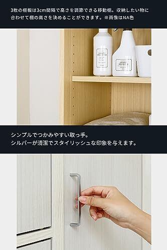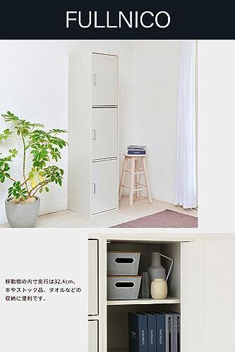 【商品説明】シンプルであきのこないナチュラルな木目柄のフルニコシリーズ。FUL-1845-3D WHは3枚扉の木製収納庫 ラックです。幅43cmのスリムタイプ。扉内には合計3枚の移動棚。収納物にあわせて高さを調節できます。