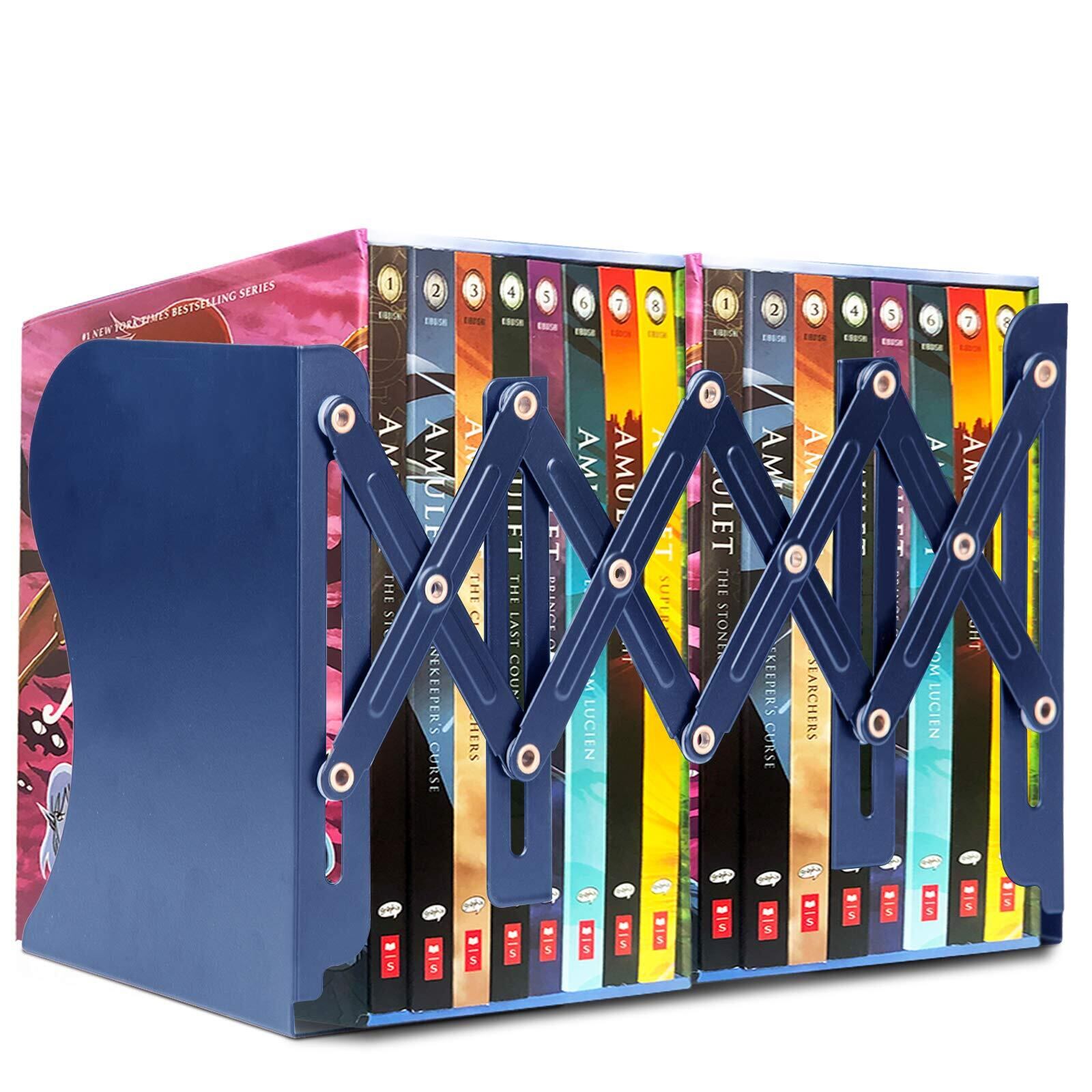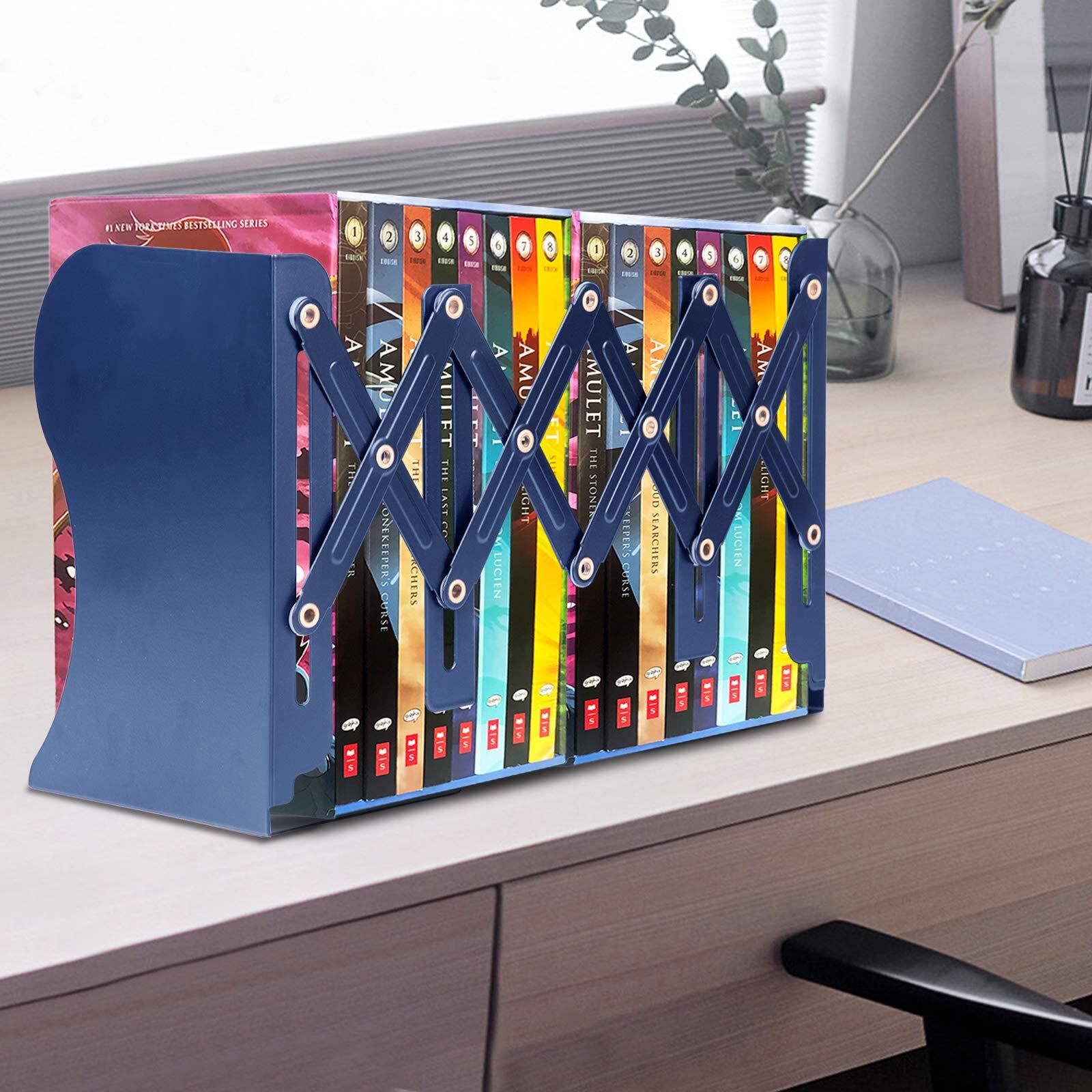 ALIOBC ブックエンド 伸縮 倒れない 本立て 滑らない 仕切りブックスタンド 金属製 卓上収納 書類 CD 教科書 A4ファイル収納 事務用品 文房具 子供部屋 デスク整理 ブルー