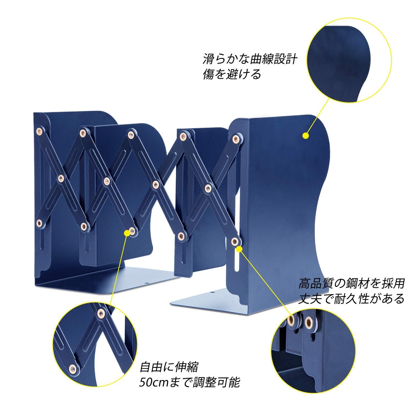 ALIOBC ブックエンド 伸縮 倒れない 本立て 滑らない 仕切りブックスタンド 金属製 卓上収納 書類 CD 教科書 A4ファイル収納 事務用品 文房具 子供部屋 デスク整理 ブルー | hananoki