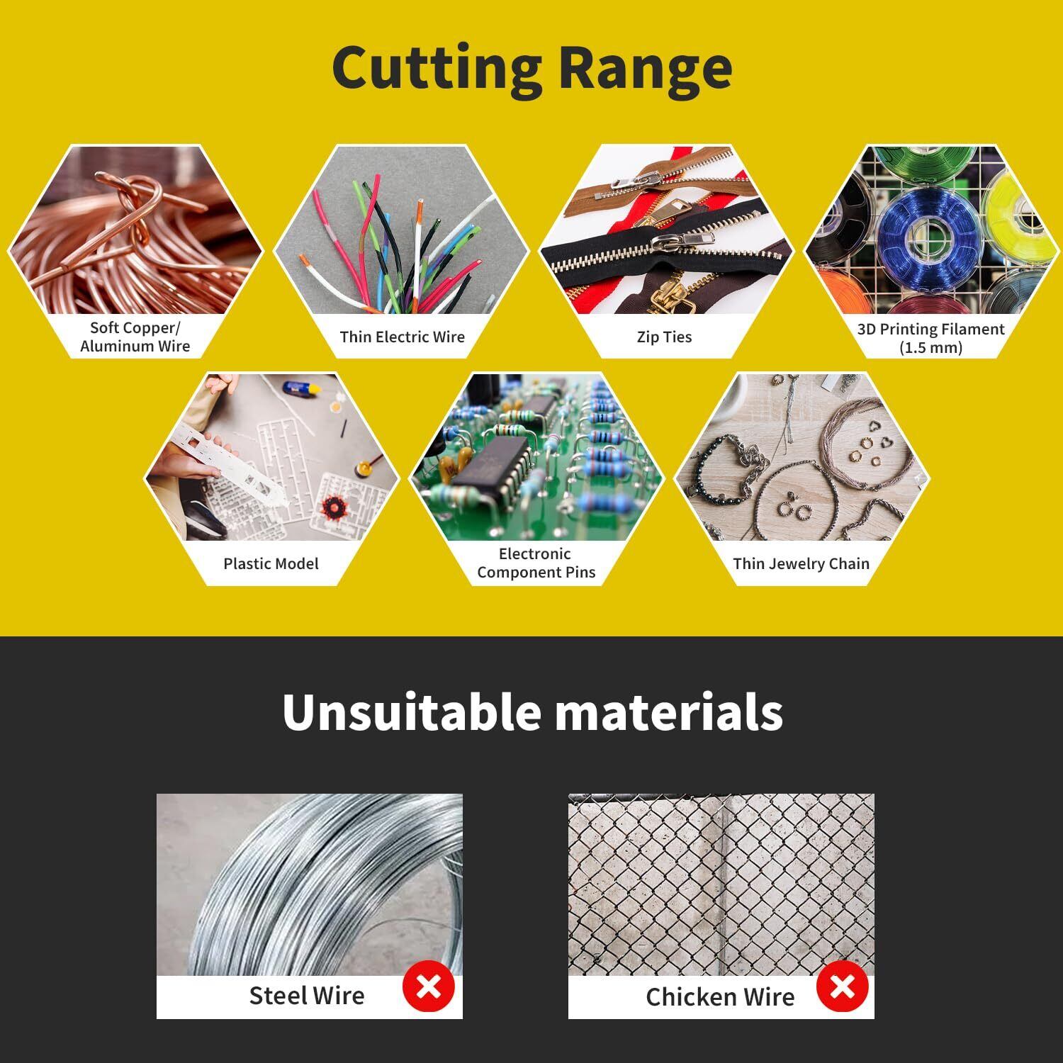 多用途の使用:これらの精密ニッパーは、最大16AWGの細い電線、アルミ、銅、軟金属線、ジッパータイ、さらにはプラスチックなど、さまざまな材料に対応しています。ジュエリー制作、プラスチックモデルの工作、電子部品の作業など、どの作業にも強力ニッパーは正確で効率的な切断を提供する理想的なツールです。