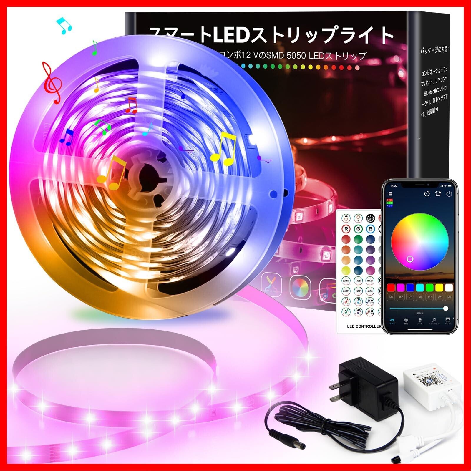Pozold LEDテープライト RGB テープライト5m 30leds/m SMD5050 LEDテープ 両面テープ APP制御 40キーリモコン 音声同期 1600彩り 高輝度RGB LED strip light 間接照明 テープ 切断可能 調光調色 取付簡単 DIY可能 | hananoki