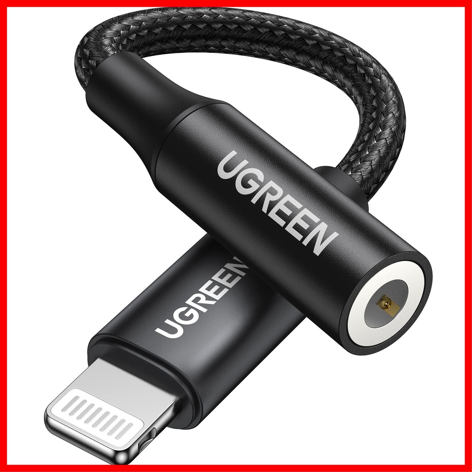 UGREEN 【MFi認証】 Lightning - 3.5 mm iPhone イヤホン 変換アダプタ ライトニング イヤホンジャック 変換 ナイロン編み 【ハイレゾ音質】 音量調節/通話/音楽対応 コントローラー付き lightning イヤホン 変換 iPhone7以降に対応 ブラック