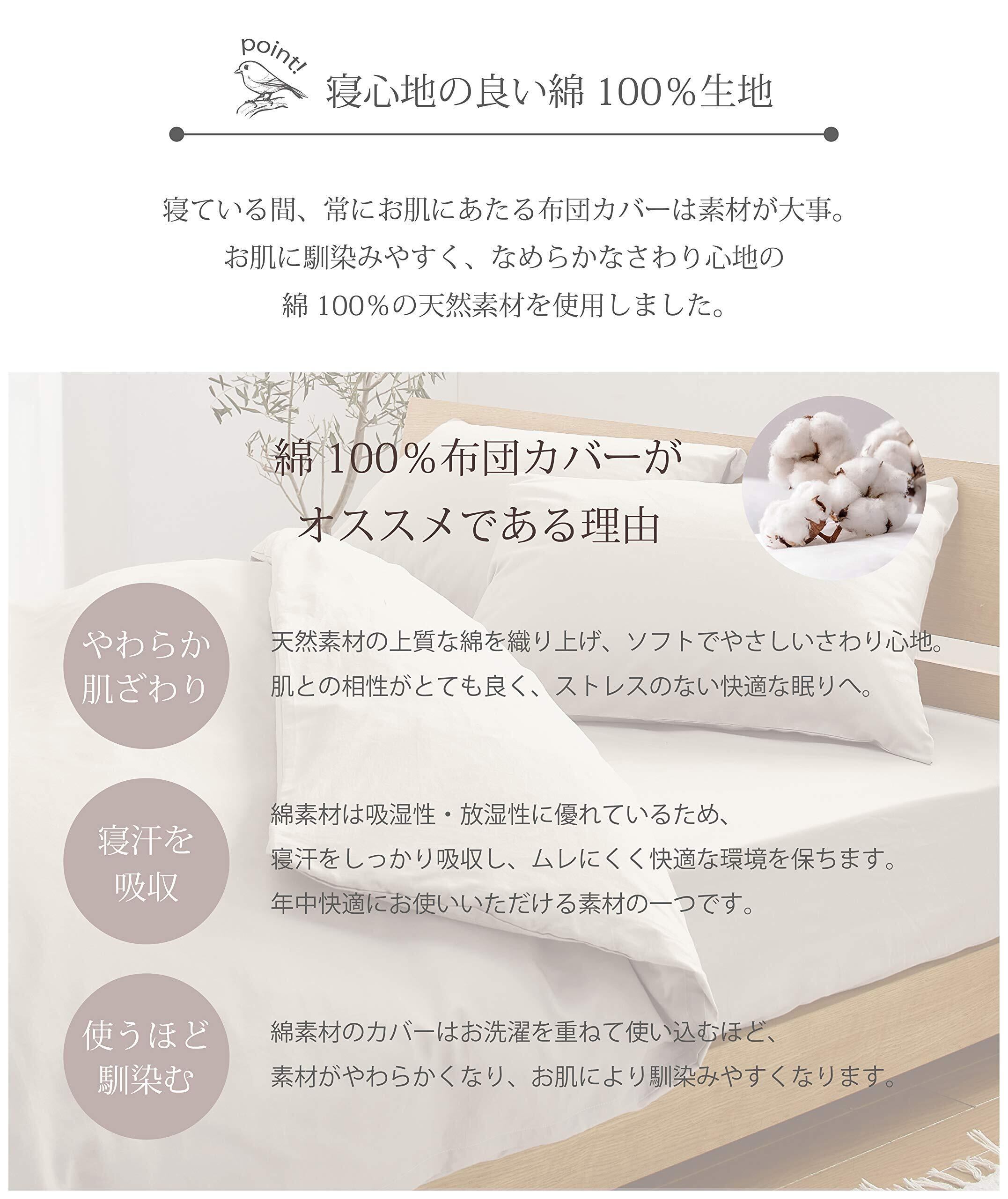 ゴム式ですのでお一人で簡単に掛けやすく、どんなお布団やお部屋にも合う4色をご用意!