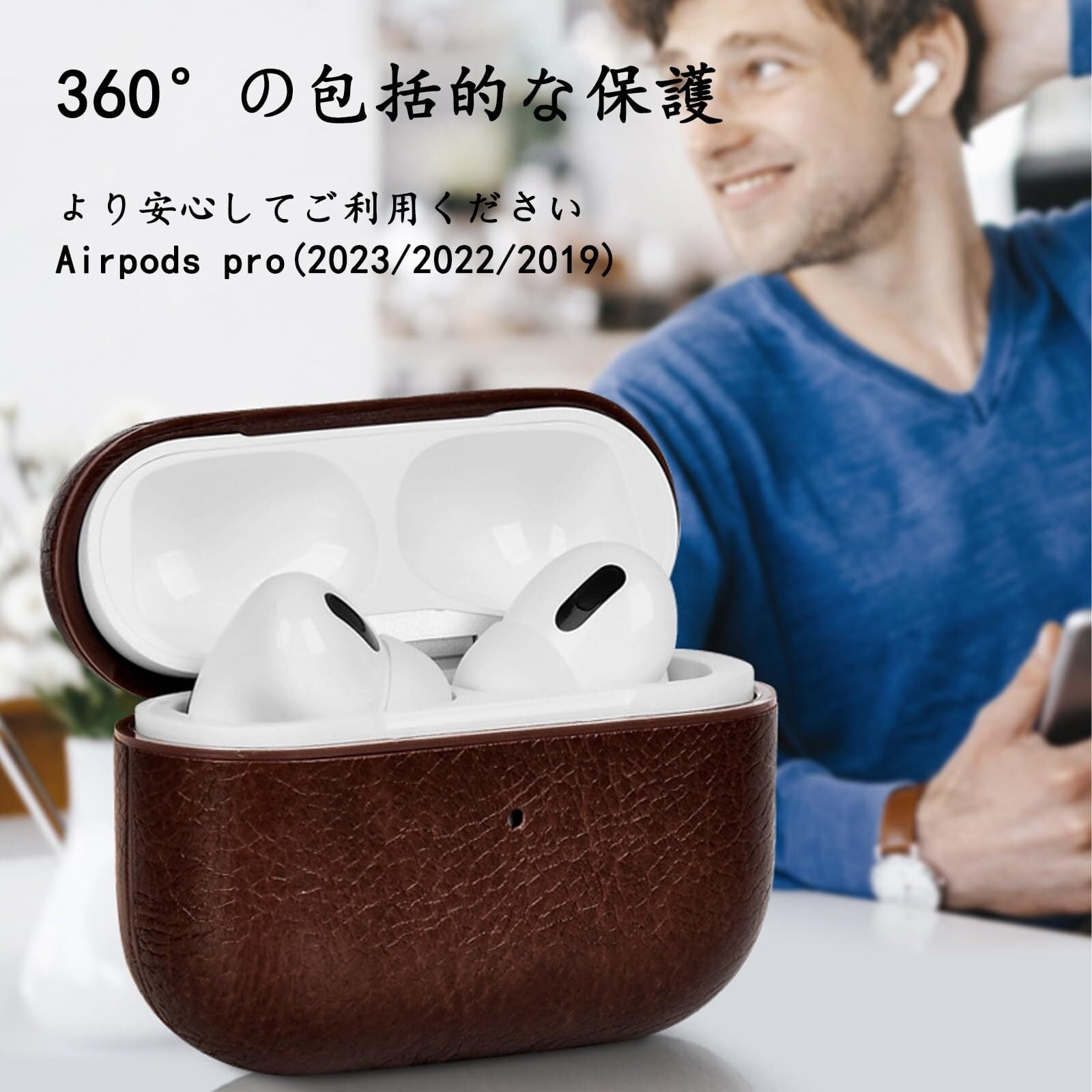 対応機種:AirPods Pro(2023/2022/2019)のために設計されたレザーカバー。購入前にモデルを事前に確認してください 。