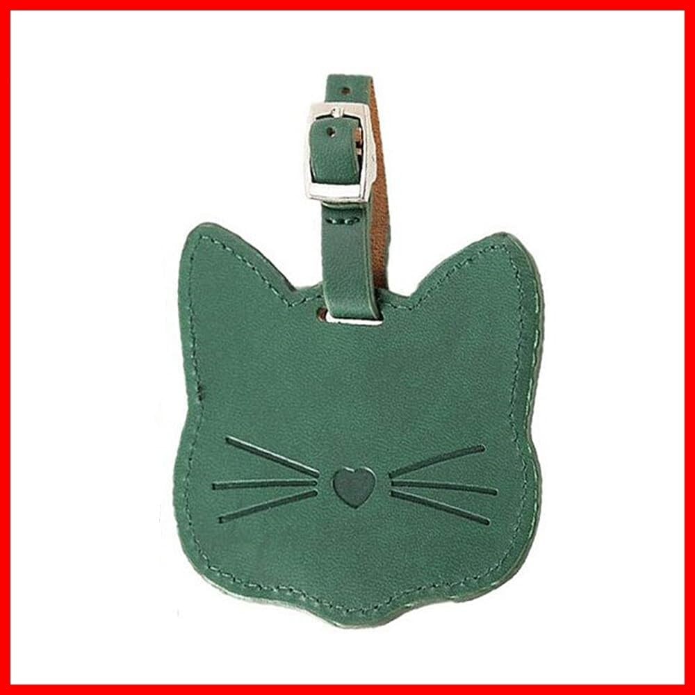 LOYELEY 猫 ネームタグ バッグタグ 荷物タグ スーツケースタグ PUレザー 可愛い 軽量 柔軟 耐用 取り外し簡単 旅行タグ 紛失防止 お子様バッグ/スーツケース/スポーツバッグ 通用 旅行 出張用 (グリーン)