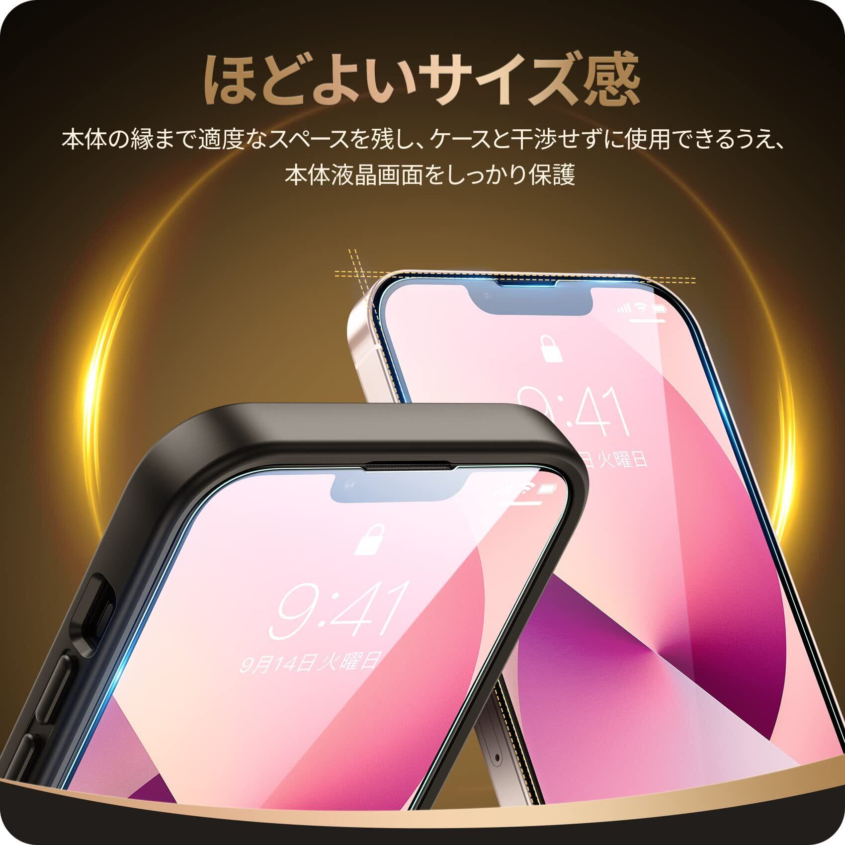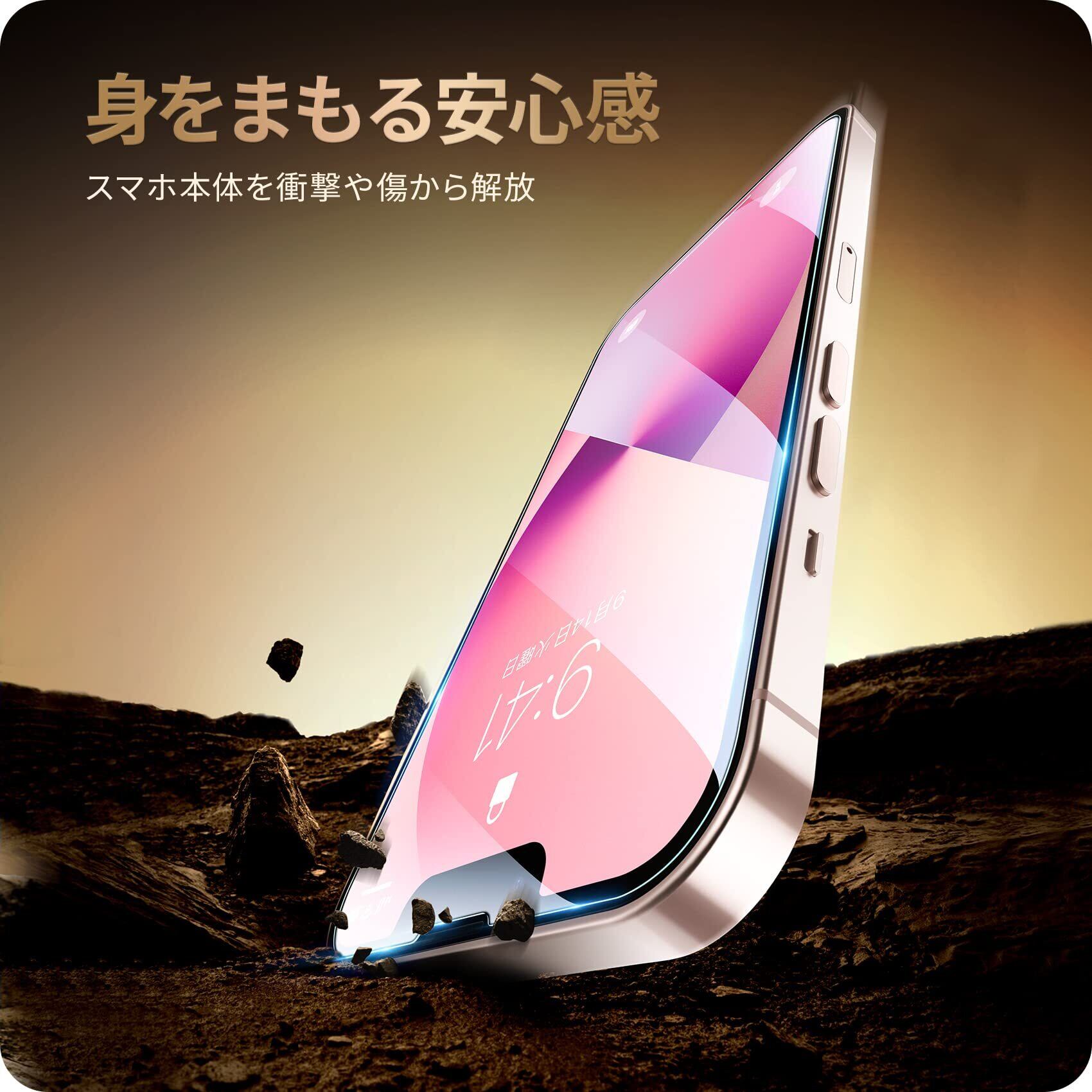 【9H硬度・飛散防止】 9H硬度ガラスを採用し、ハードコーティング技術により外部からの衝撃を吸収し、アイフォン13ミニスクリーンへのダメージを抑えました。飛散防止加工により万一割れてもガラス破片が飛び散りづらくとなります。