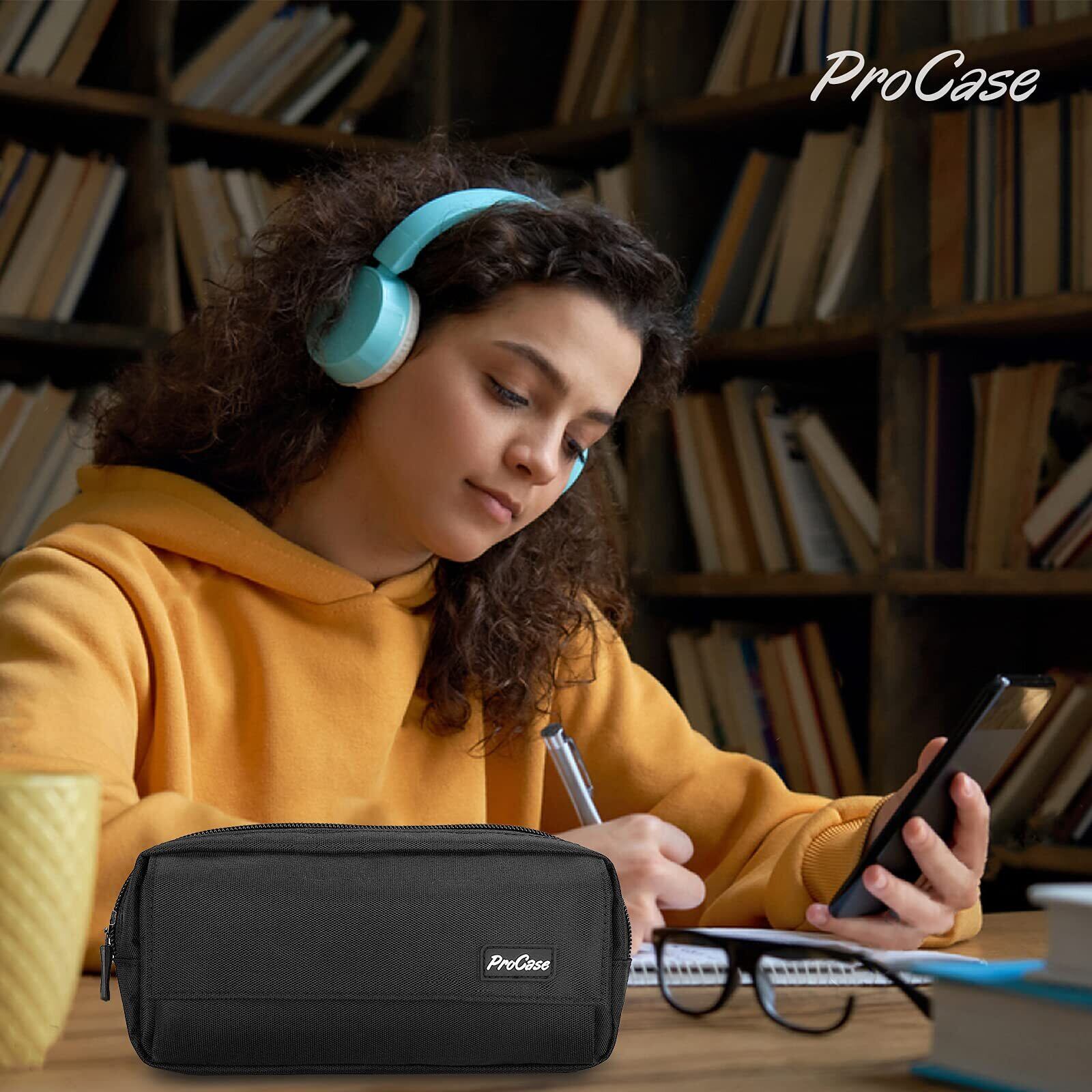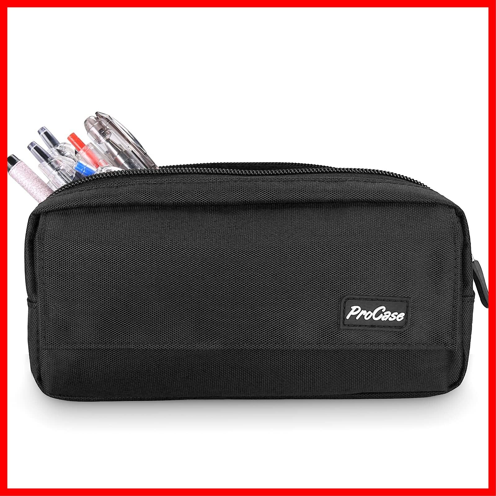 ProCase ペンケース 大容量 シンプル筆箱 ジッパー付き 学生用 社会人用 多機能 –ブラック