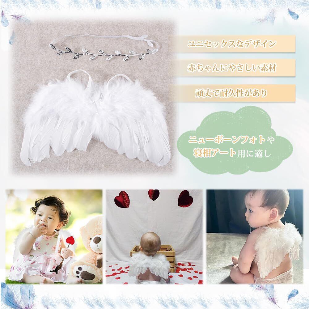[LIKENNY] 天使の羽 ハーフバースデー ベビー ニューボーン 可愛い エンジェル 衣装 寝相アート ヘアバンド エンジェルセット 新生児 写真 小道具 舞台 撮影