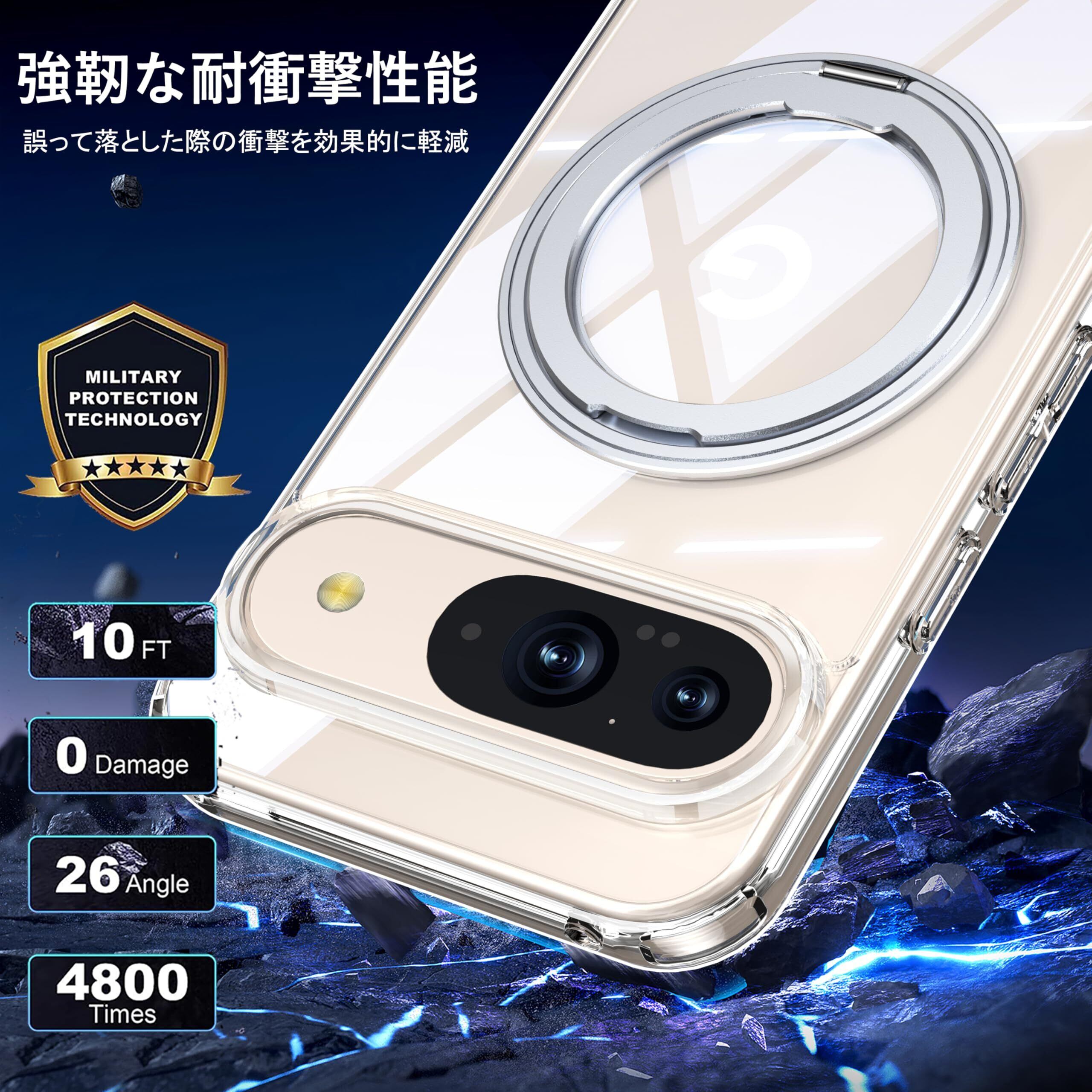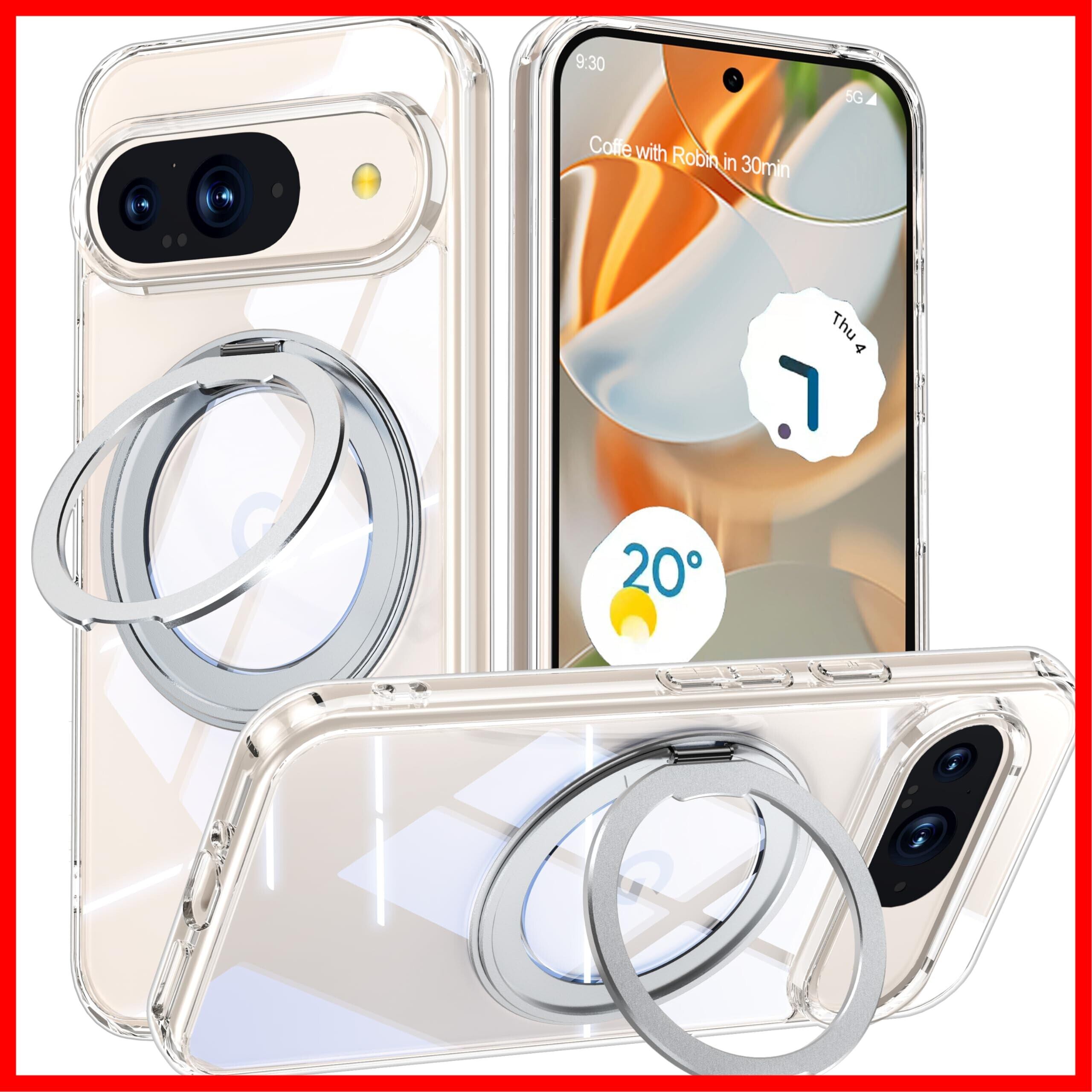 Google Pixel 9 / Pixel 9 Pro 用 ケース Magsafe対応 ピクセル9 プロ カバー 360°回転スタンド Uovon スマホケース 携帯ケース ワイヤレス充電 車載ホルダー 対応 ストラップ穴付き 透明 指紋防止 黄变防止 ・ クリア