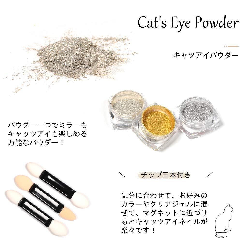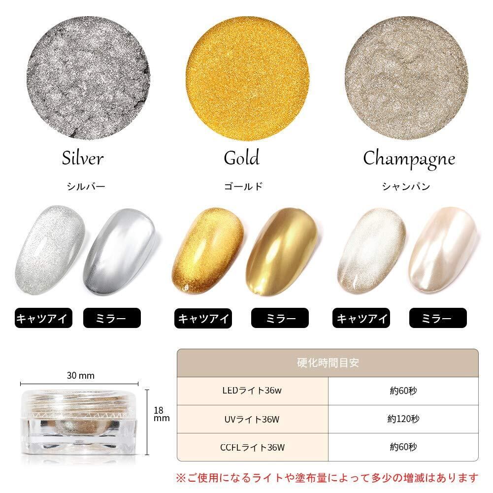 ジェルネイル マグネットパウダー ミラーパウダー マグネットネイル ミラーネイル キャッツアイパウダー UV・LED対応 3色入り【シルバー/ゴールド/ローズゴールド】