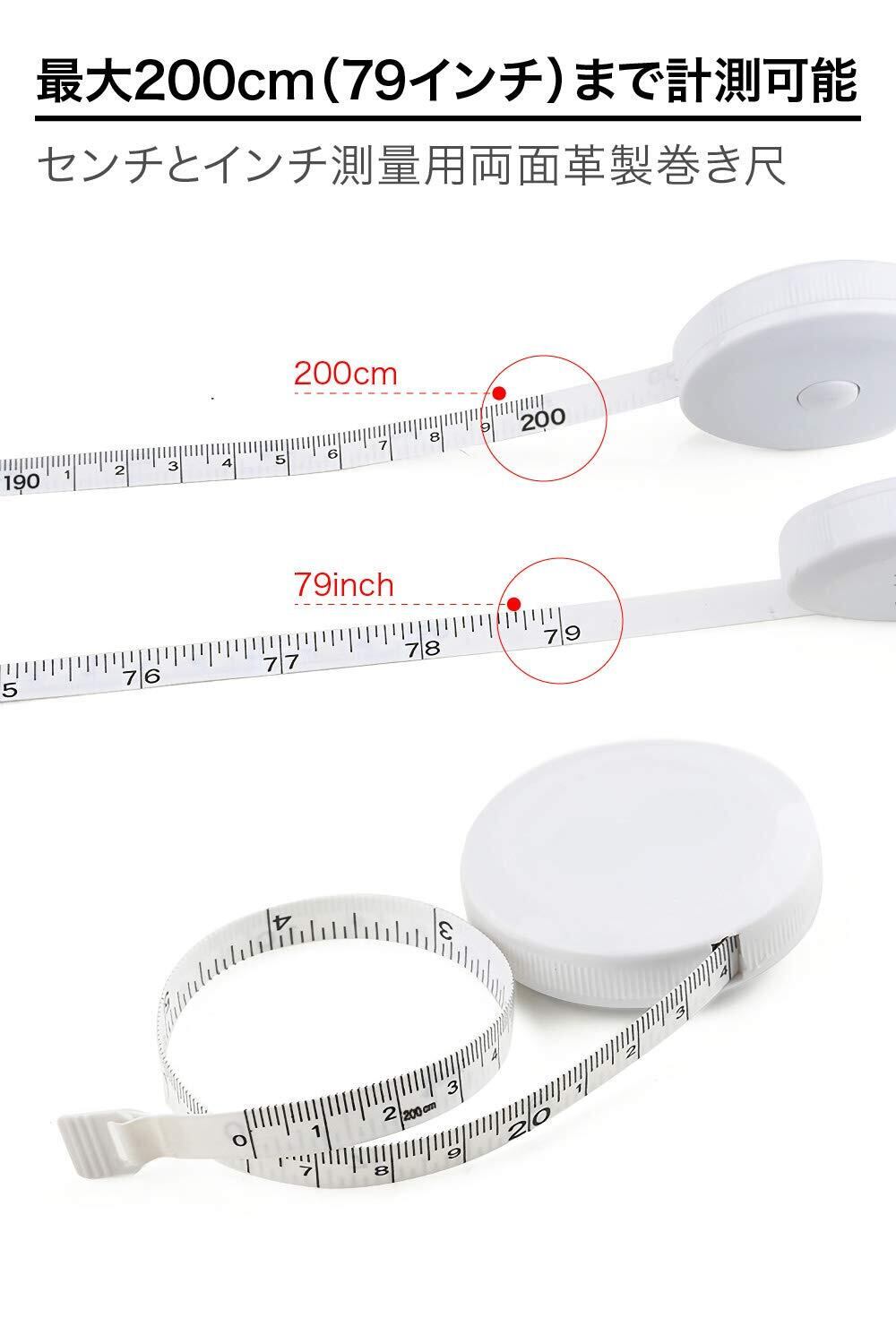 【正確な計測】高精度のメジャーは、0.1mm単位での正確な計測が可能です。建築、DIY、裁縫、家庭用に最適で、どんなシチュエーションでも信頼できる結果を提供します。 【2mまで測れる】 最大2メートル/79インチまでしっかり測れるロングタイプ。両面印刷で使い分けができます。