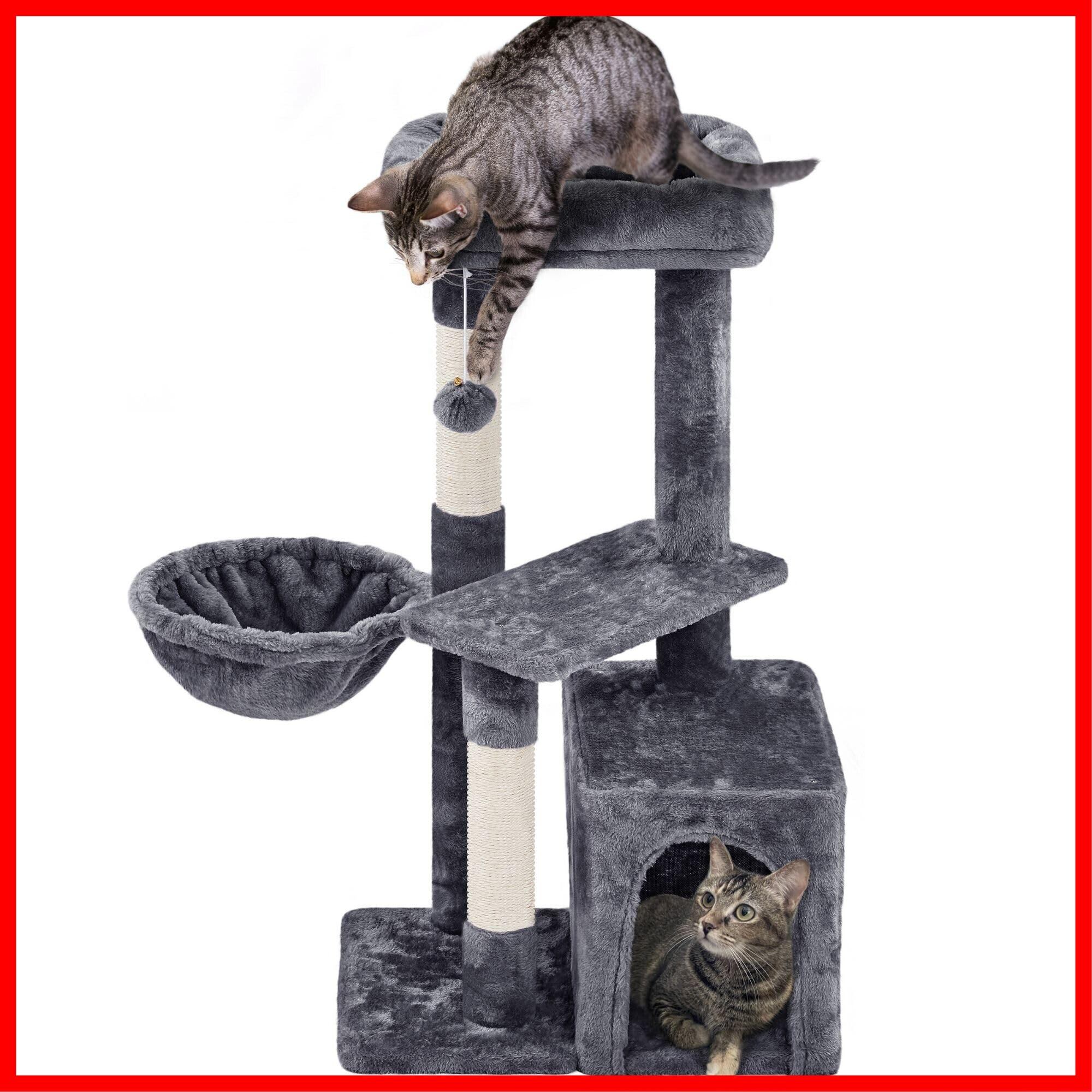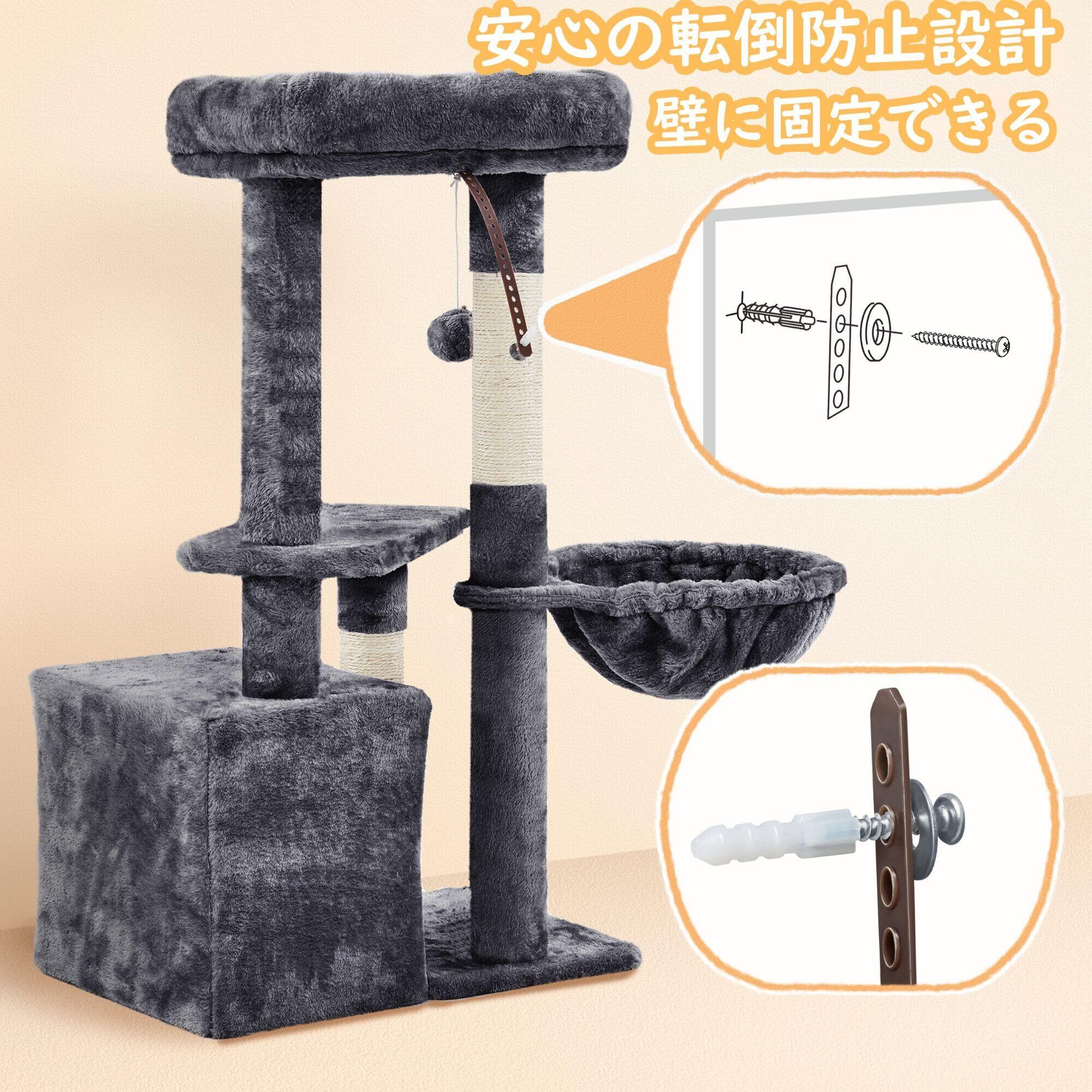 Yaheetech キャットタワー 中型 シニア猫 子猫 多頭飼い 猫タワー 爪研ぎ 広いハウス ハンモック 据え置き おもちゃ付き 天然サイザル 転倒防止 高さ87cm (ダークグレー) | hananoki