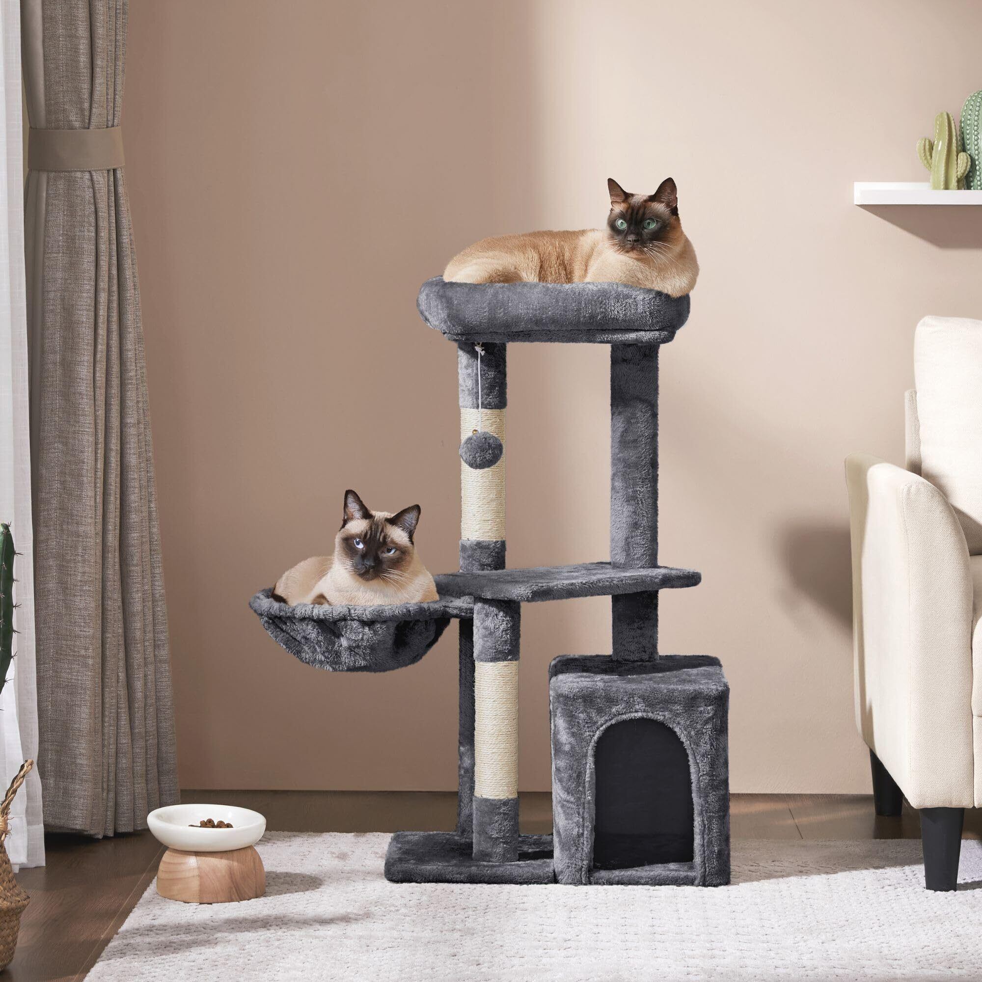 Yaheetech キャットタワー 中型 シニア猫 子猫 多頭飼い 猫タワー 爪研ぎ 広いハウス ハンモック 据え置き おもちゃ付き 天然サイザル 転倒防止 高さ87cm (ダークグレー)