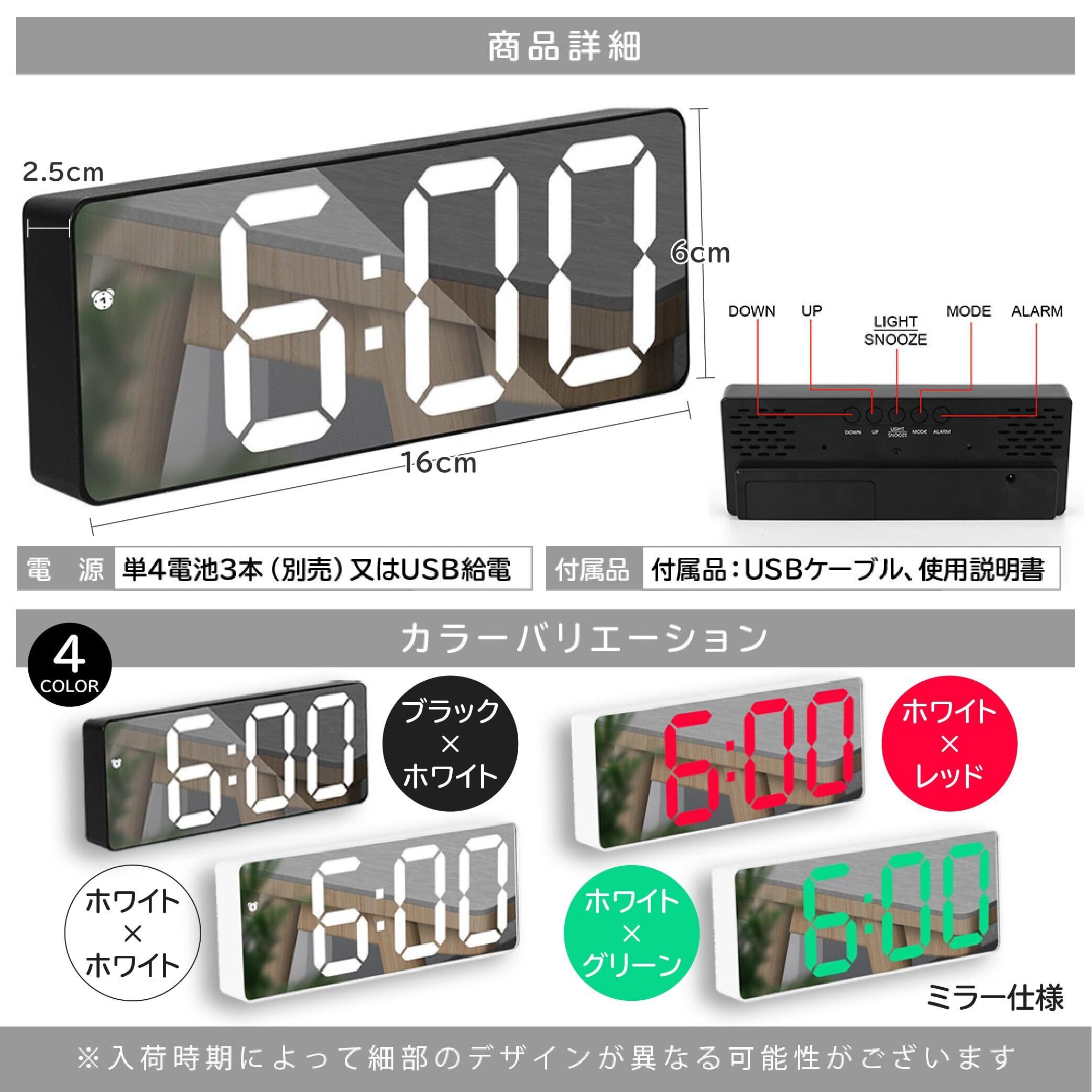 PENGUINFLY 置き時計 デジタル 目覚まし時計 置時計 静音 電池式 USB給電 卓上時計 おしゃれ 小型 オシャレ (白本体×白ライト)