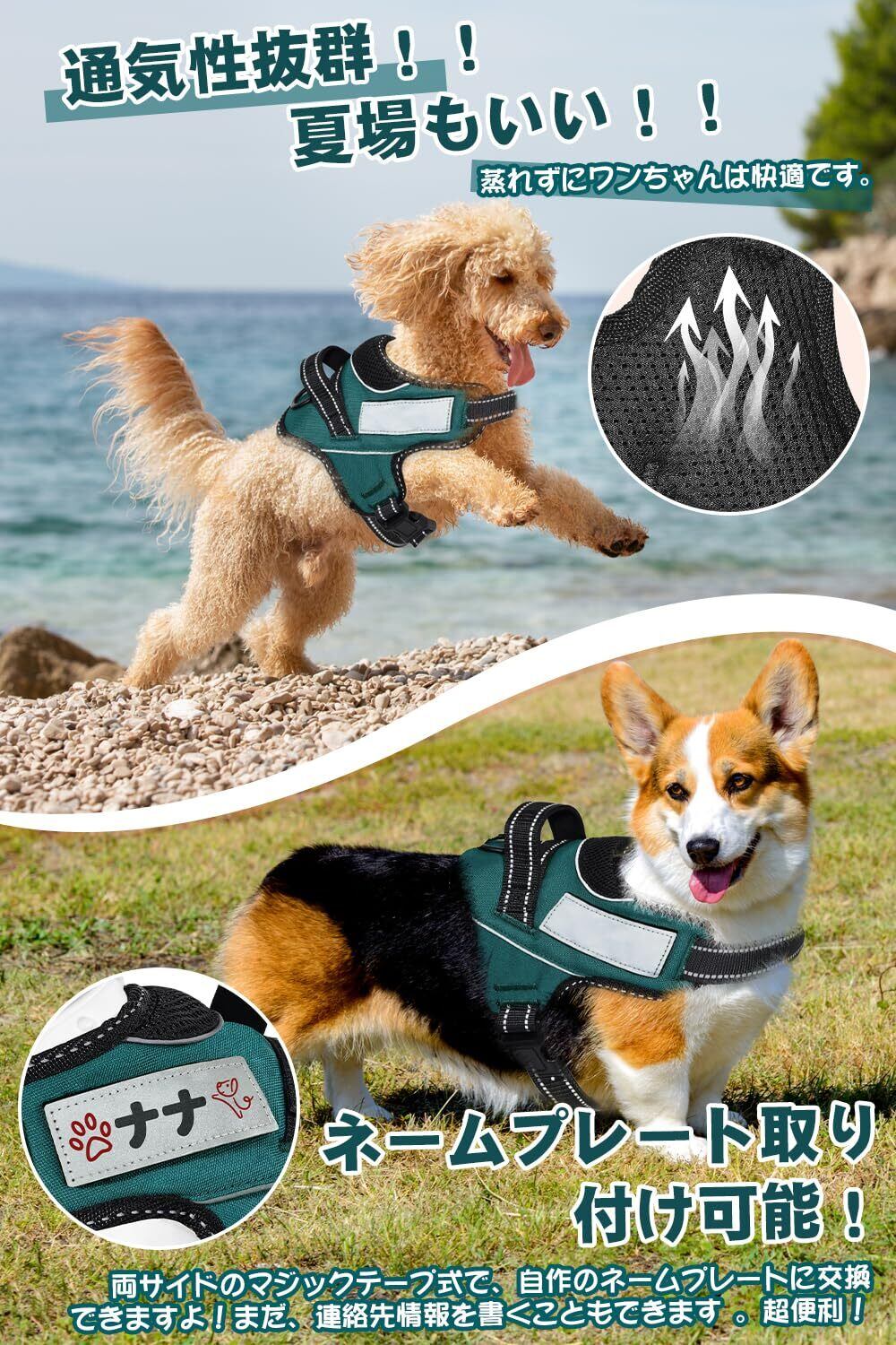 【ドッグトレーナー推薦】OGURIYA犬 ハーネス 喉に優しい 小型犬 中型犬 大型犬 着脱簡単 超可愛い色 ネームプレート 夜間反射 サイズ調整可能 犬体工学に基づいた 7色選択(ダークグリーン,S)