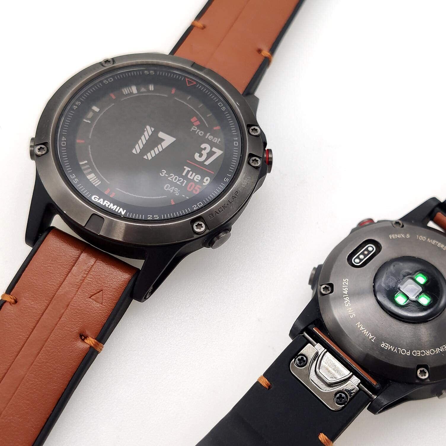 Ahayo QuickFit 22mm 交換本革 バンド に適合するガーミンFenix 8 47mm / Fenix 7/ epix Pro 47mm/ Fenix 6 / Fenix 5 / Approach S62,シリコンハイブリッドデザインの通気性ストラップベルト用の Garmin Approach S70 47mm (褐色) | hananoki
