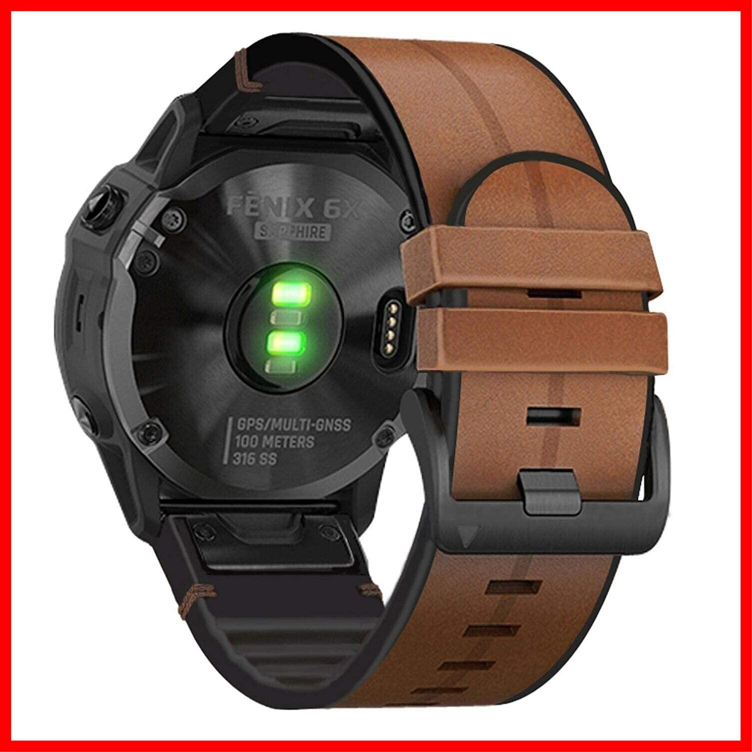 Ahayo QuickFit 22mm 交換本革 バンド に適合するガーミンFenix 8 47mm / Fenix 7/ epix Pro 47mm/ Fenix 6 / Fenix 5 / Approach S62,シリコンハイブリッドデザインの通気性ストラップベルト用の Garmin Approach S70 47mm (褐色)