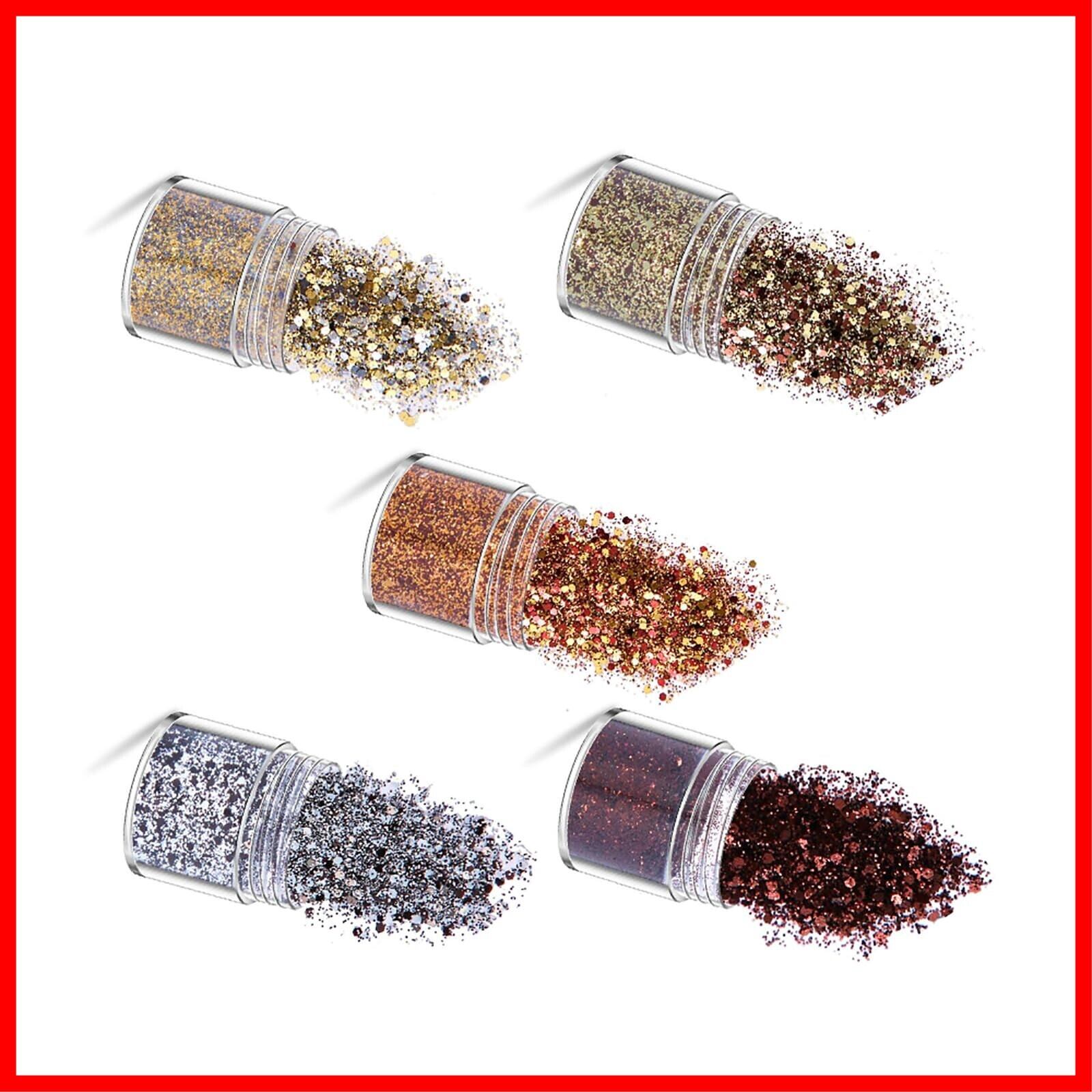 ラメホログラム 5色セット キラキラ ネイルパーツ ネイルアート 容器付き グリッター ラメグリッター ラメパウダー ネイルパウダー 顔飾り ヘア飾り 新年 クリスマス メイク用品 ゴールド (コーヒー)