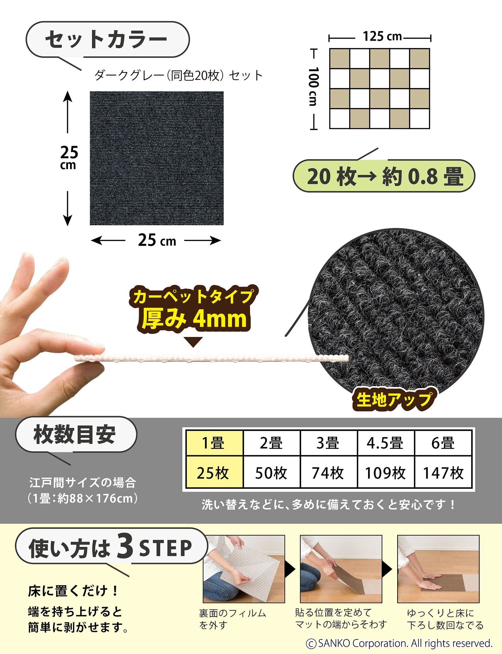 【日本製 撥水 消臭 洗える】サンコー ずれない タイルカーペット ペット用 30×30cm ダークグレー 20枚 カーペットタイプ おくだけ吸着 タイルマット ジョイントマット KN-31 | hananoki