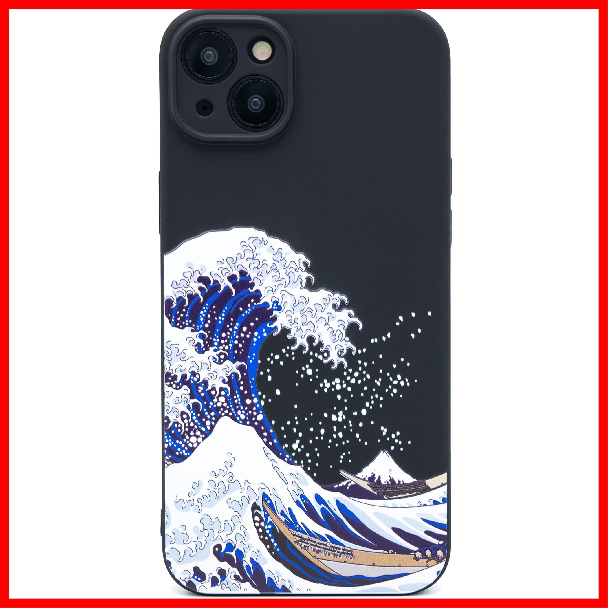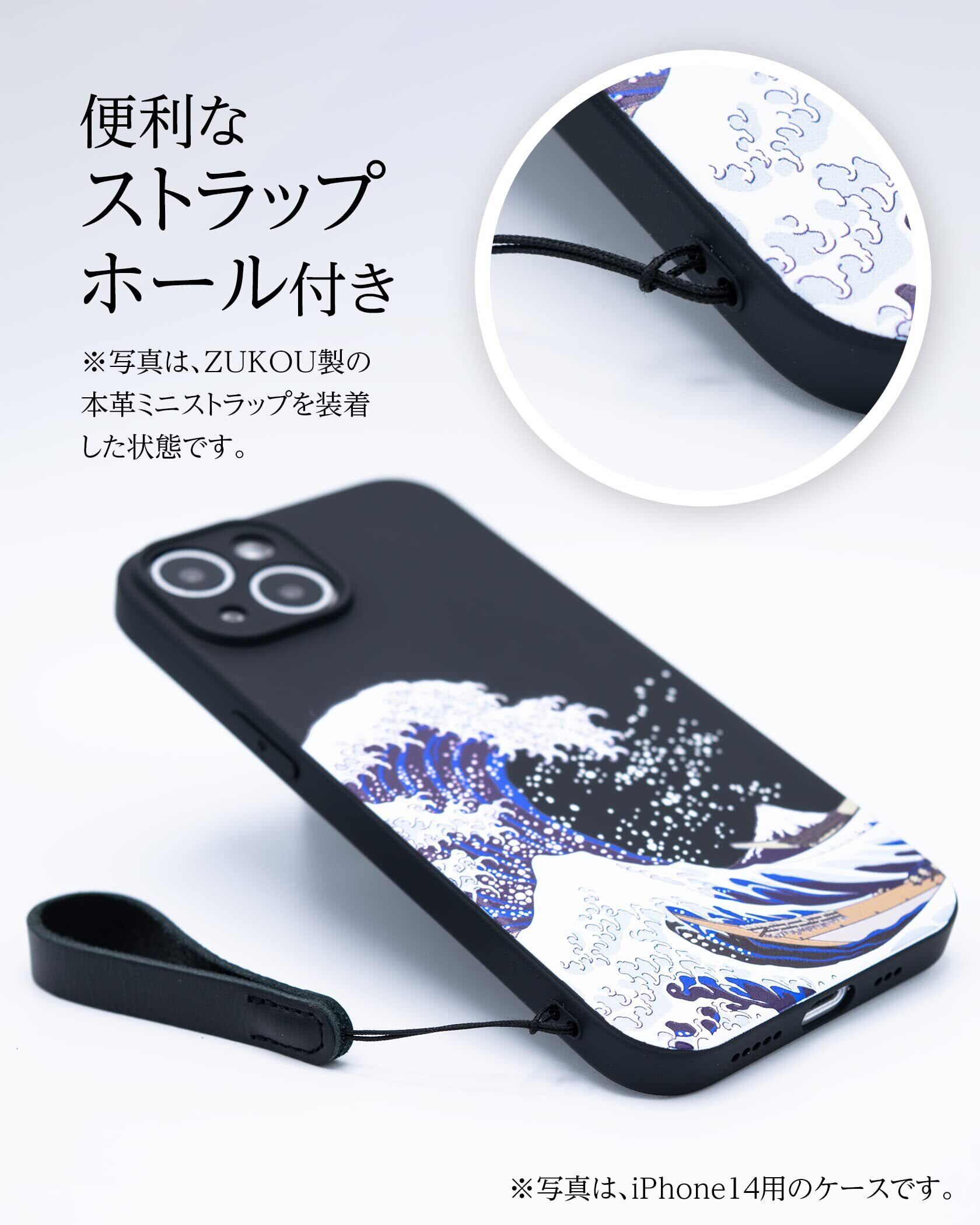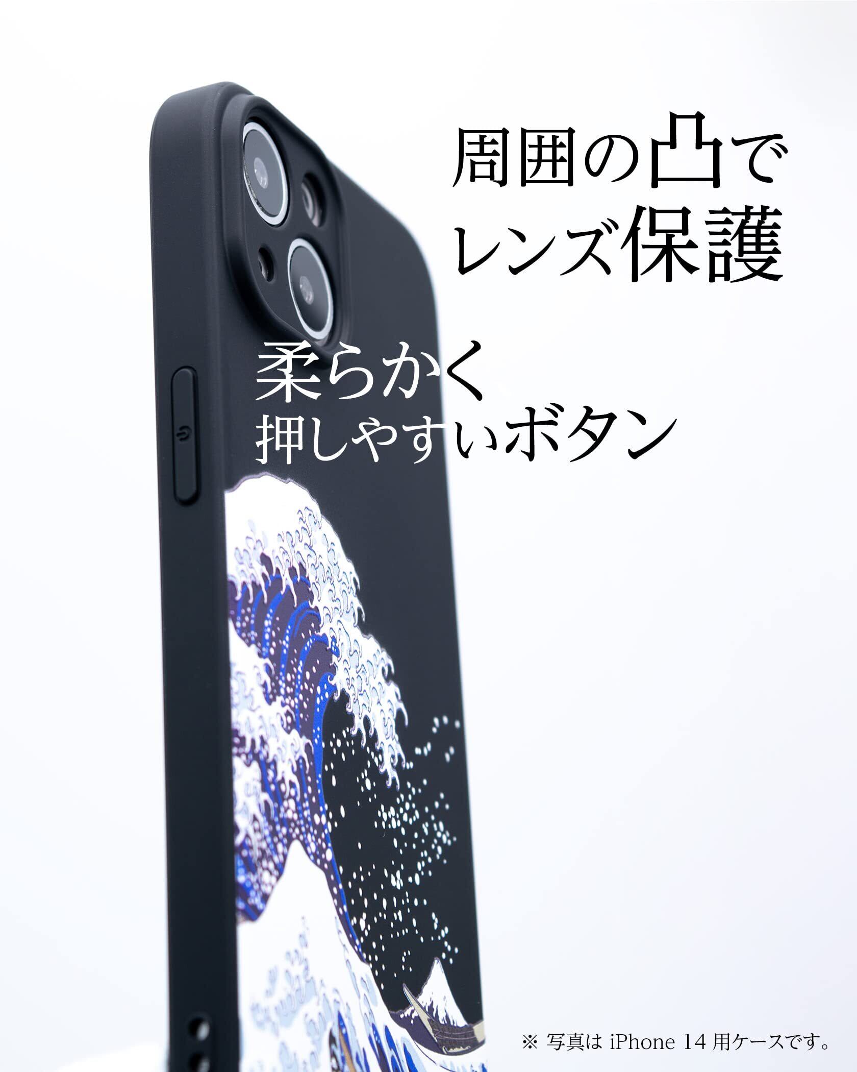 ZUKOU 和風 浮世絵 iPhone 14 Plus ケース 北斎 立体 3D スマホケース ソフト 和柄 マット 黒 ブラック