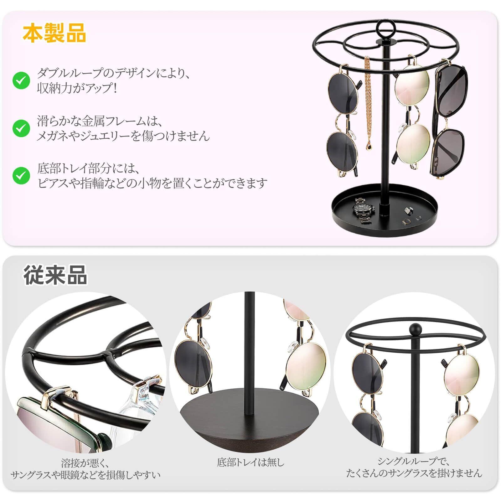 [Mocamoro] メガネスタンド サングラススタンド 20本収納 眼鏡ラック サングラスかけ ラック 見せる収納 金属製 トレー付き おしゃれ