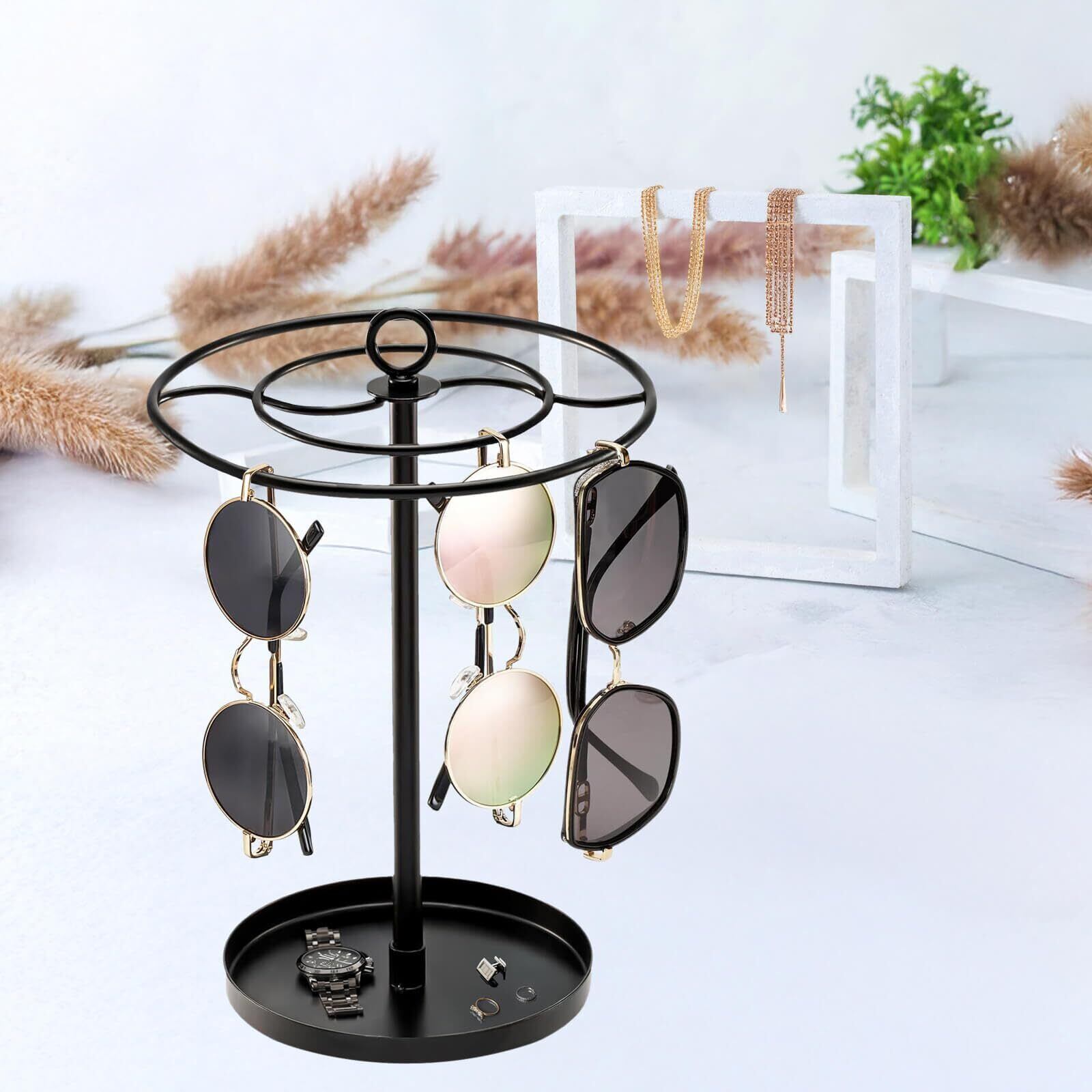 素材:スチール製のサングラスメガネスタンドは、どんなインテリアにもよく馴染みます。