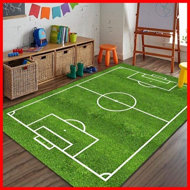 【サッカー場カーペット】サッカー好きの子供にはたまらない、リアルなデザインが特長。夢中になれること間違いなし。