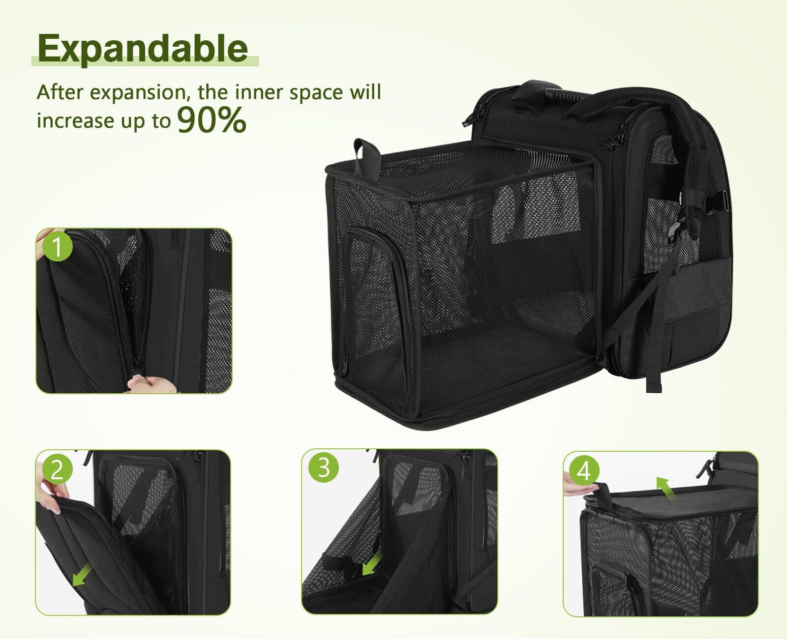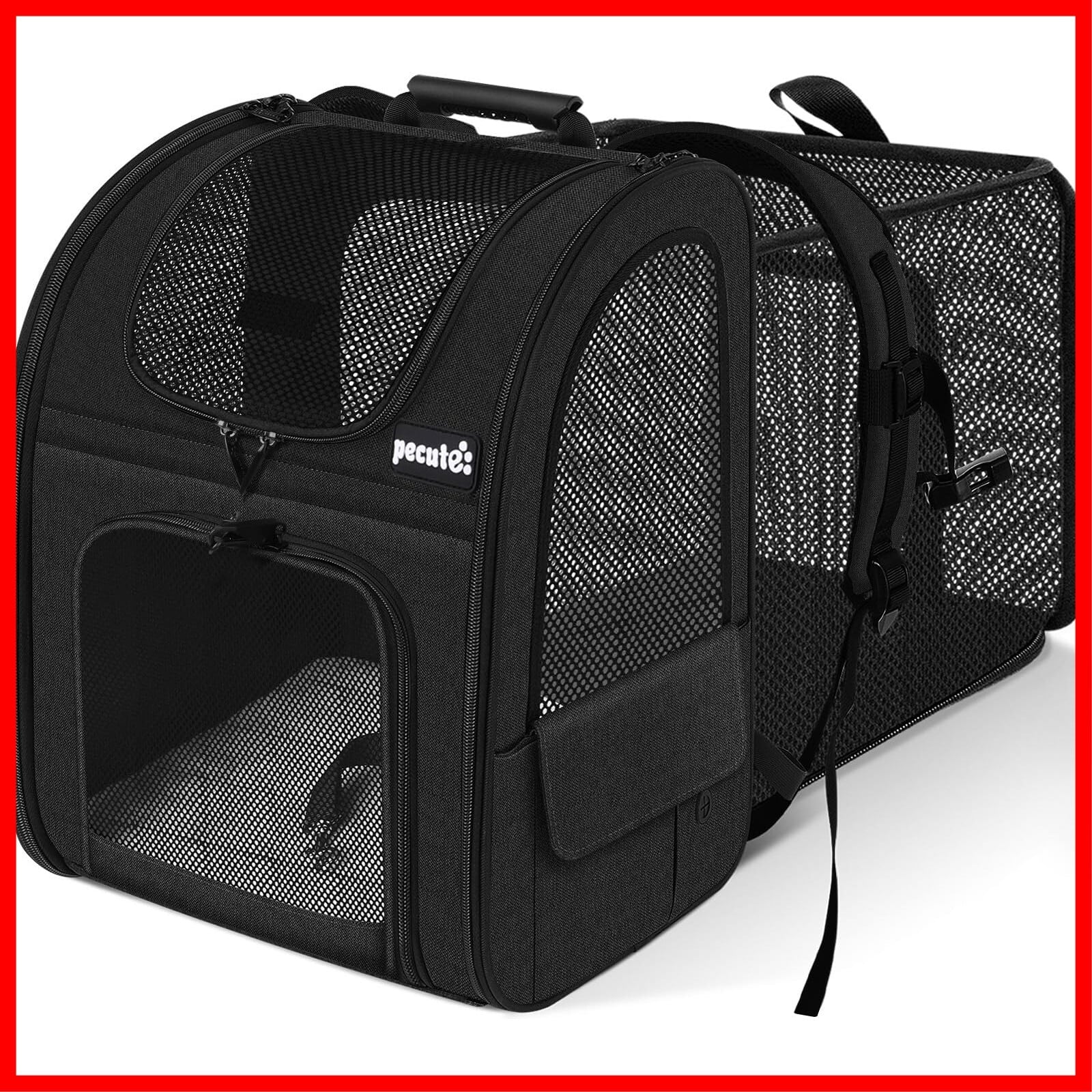 ペキュート Pecute ペット キャリーバッグ 猫用 犬用 リュック メッシュ窓 通気性 拡張可能 2WAY ペットハウス ケージ 折り畳み お出かけ ドライブ 旅行 通院 防災 避難用 キャリー ブラック